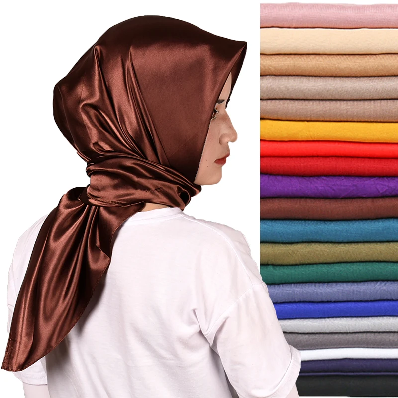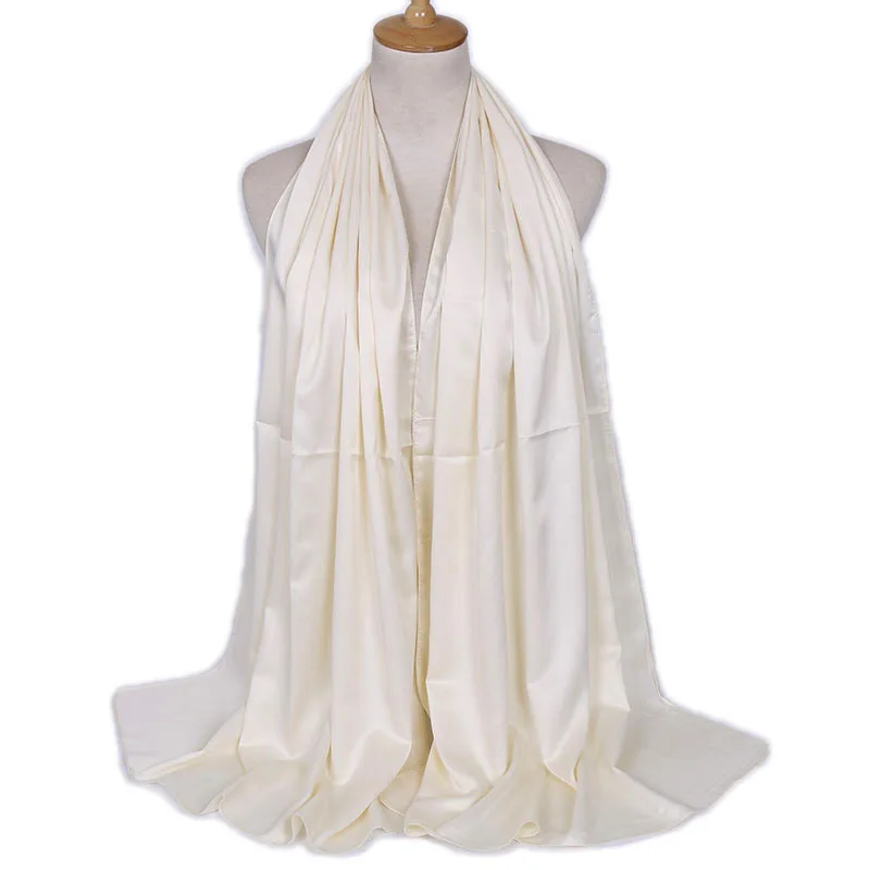 Однотонный Роскошный шелковый шарф, хиджаб, повязка на голову для ж...