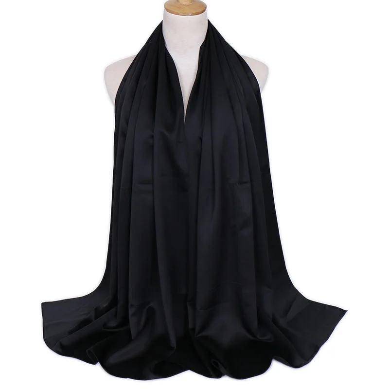 Модный, Шелковый, сатиновый шарф-хиджаб, длинная мусульманская шаль, простой мягкий тюрбан, повязка на голову для женщин, африканская повязка на голову 180х70см