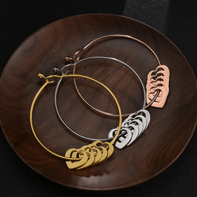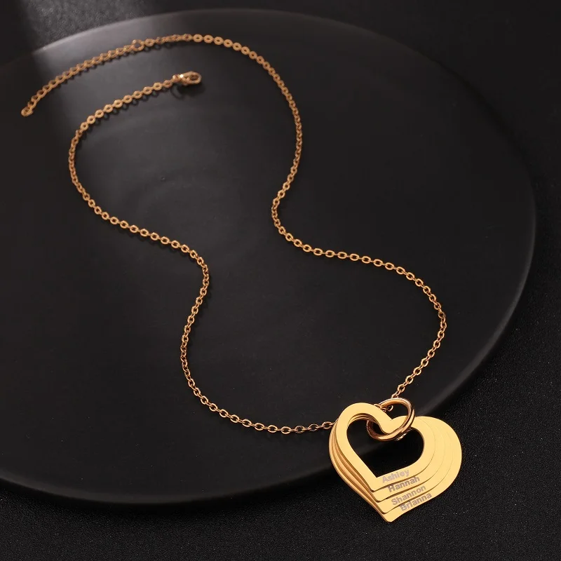 Ожерелье и браслет из нержавеющей стали с гравировкой в виде сердца