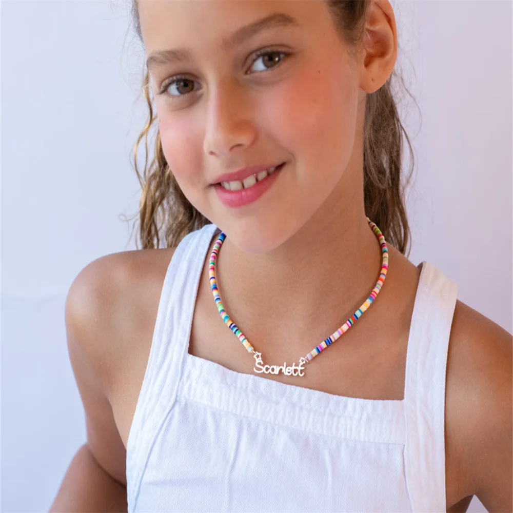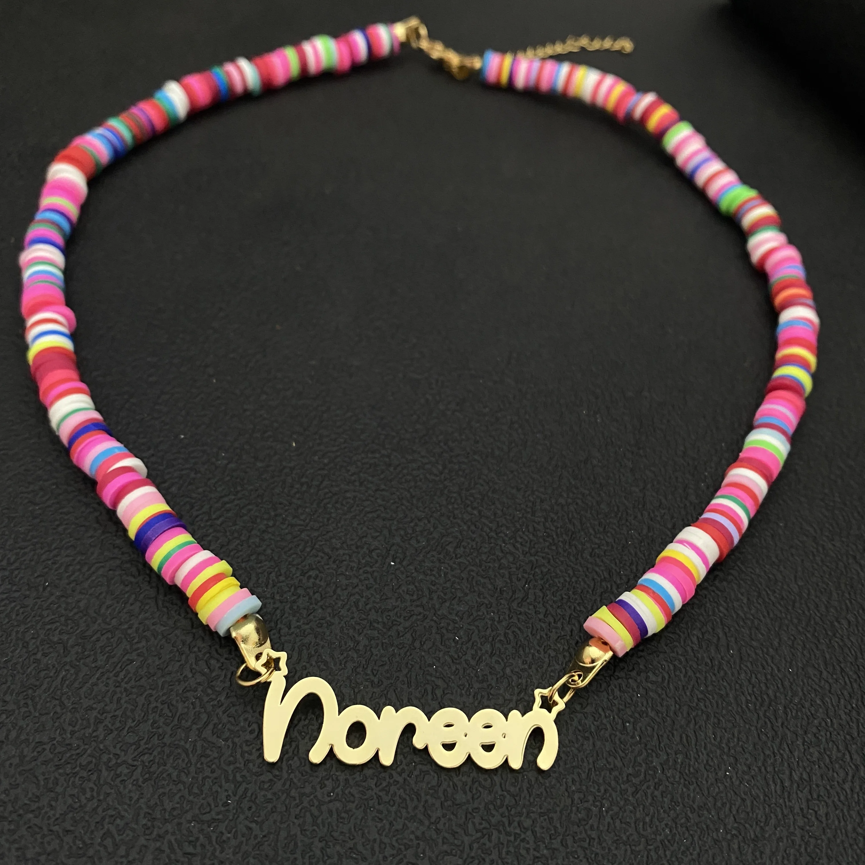 украшения на шею ожерелье на шею кулоны и подОжерелье из глины с именем на заказ, ожерелье из мягкой полимерной глины с персонализированными буквами, кулон из нержавеющей стали в богемном стиле, Радужное колье, подарок