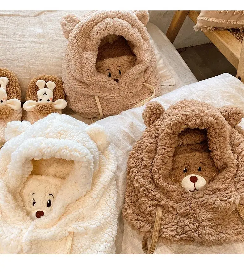 Милый мультяшный медведь овечья плюшевая теплая однотонная фотошарф...