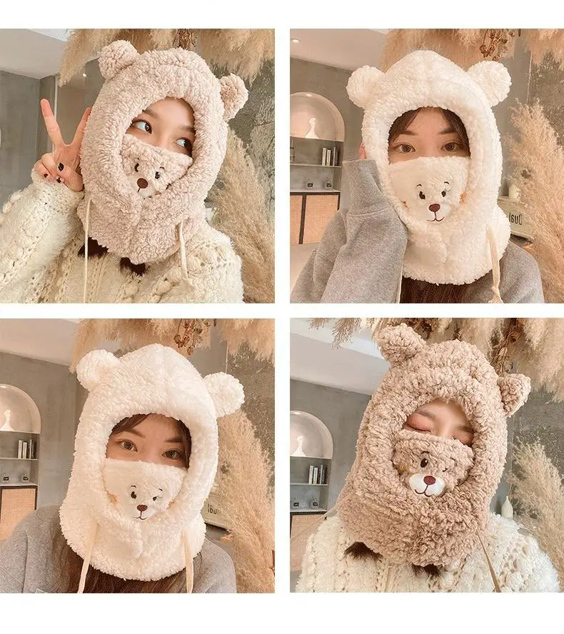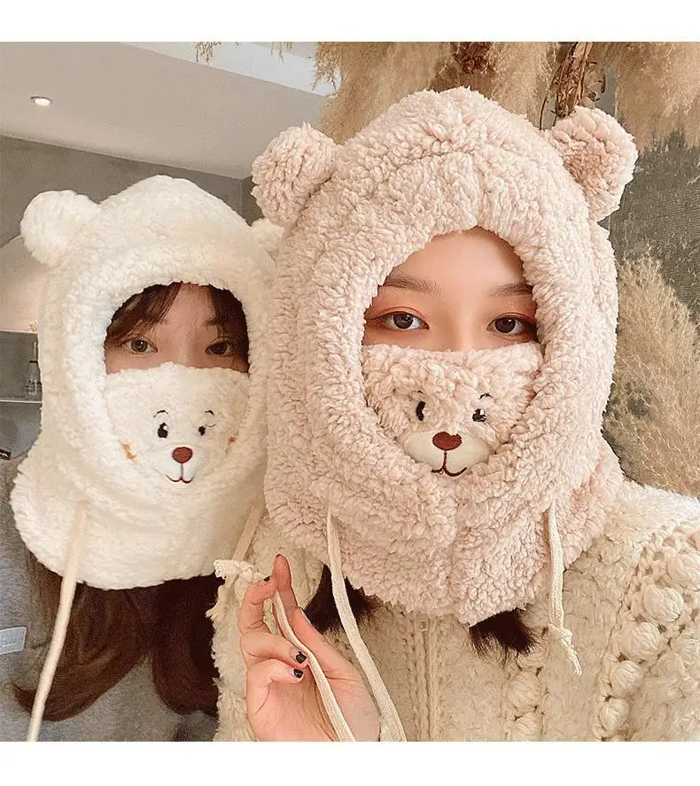 Зимняя шапка для девочек, шарф, ветрозащитные теплые шапочки, шапки, милая маска медведя, плюшевая игрушка для детей и взрослых, подарок