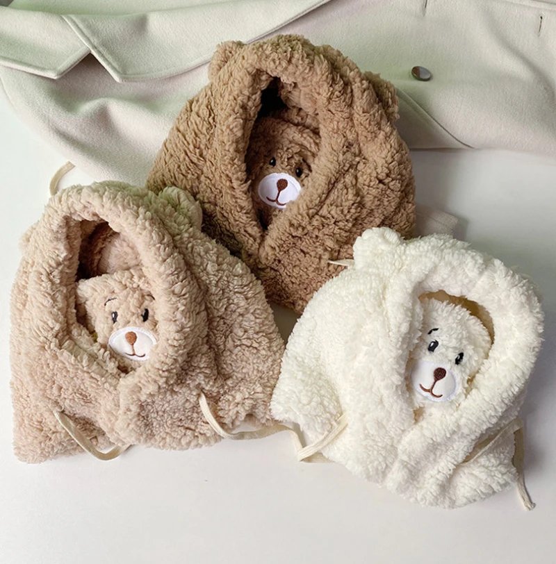 Шапка с мультяшным медведем, женская зимняя шапка, шарф, ветрозащит...