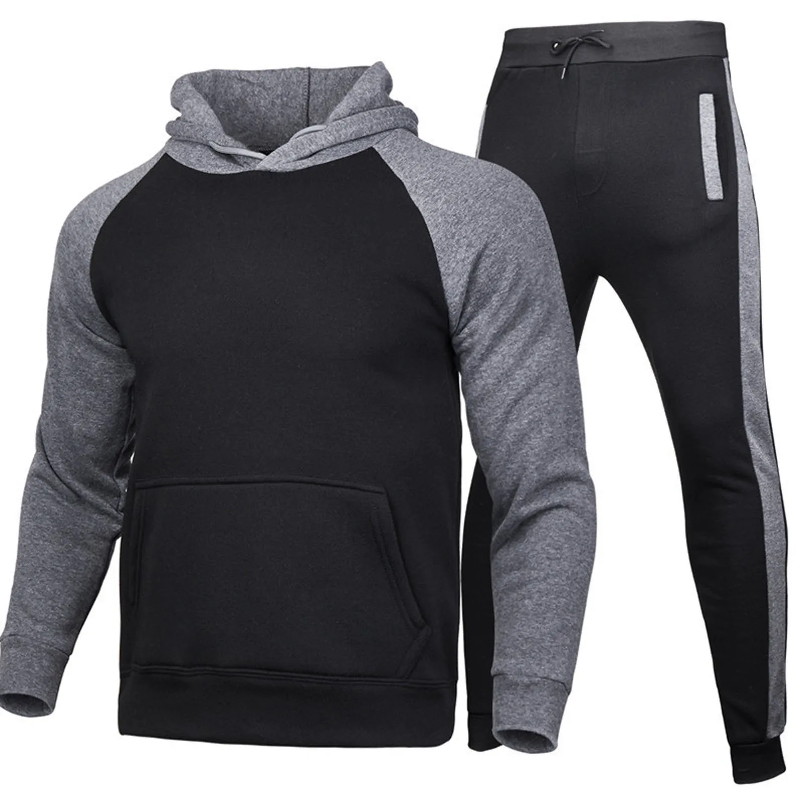 2.Особенность 1: мужской спортивный костюм из 2 предметов, спортивный костюм Костюм: с капюшоном, застежкой на шнурке, карманом, длинным рукавом, хорошим сочетанием цветов и классического дизайна. Спортивные штаны для бега: длинные штаны; Брюки с эластичной резинкой на лодыжке Шнурок для регулировки талии, с карманами.
