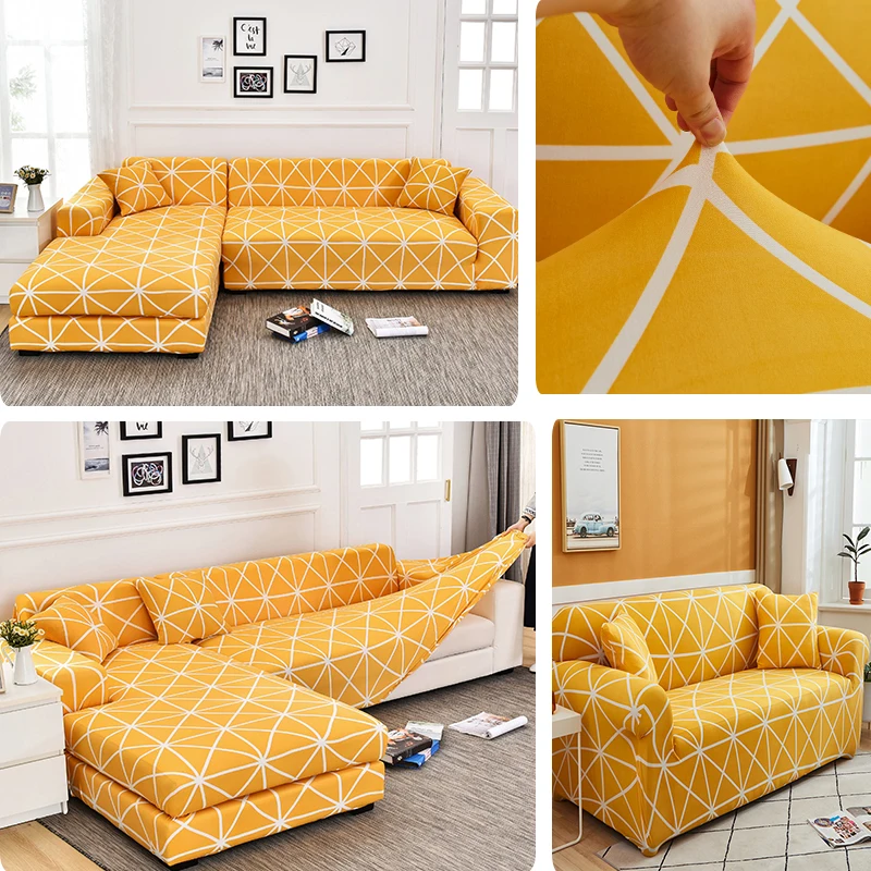 Эластичный чехол для дивана, чехол для угловой кушетки с принтом для гостиной, защита для 1234-местного дивана L-образной формы, протектор кресла
