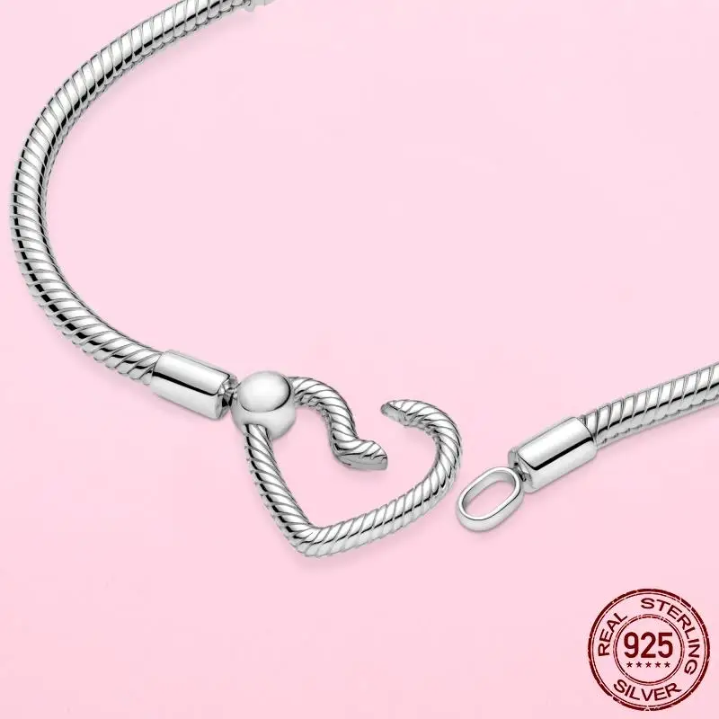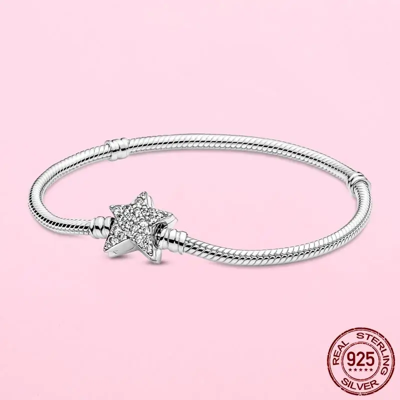 Женский браслет из серебра 925 пробы, с круглым застежкой и змеиным...