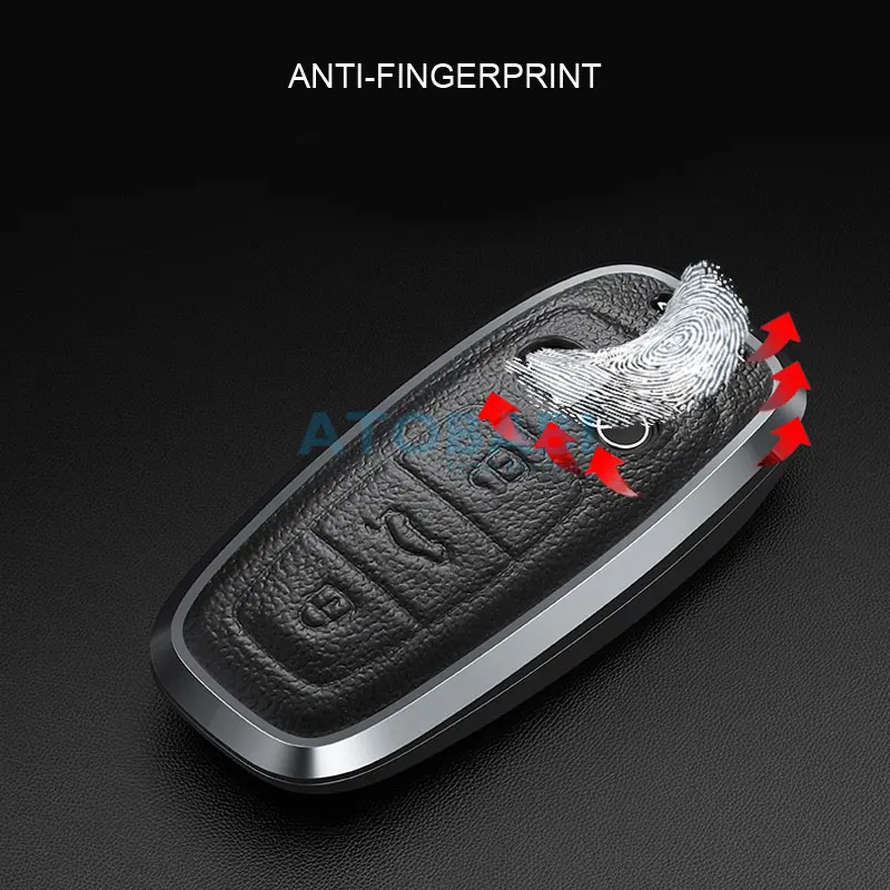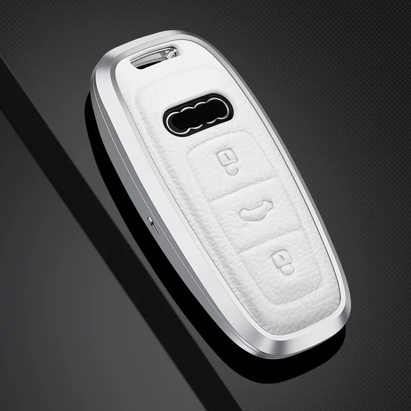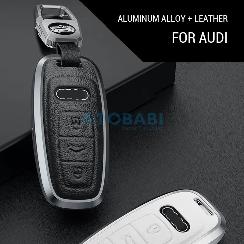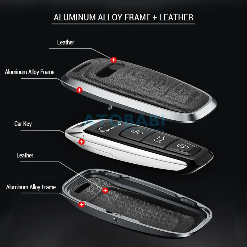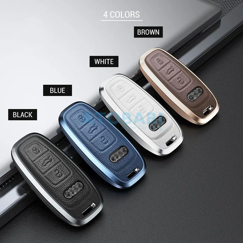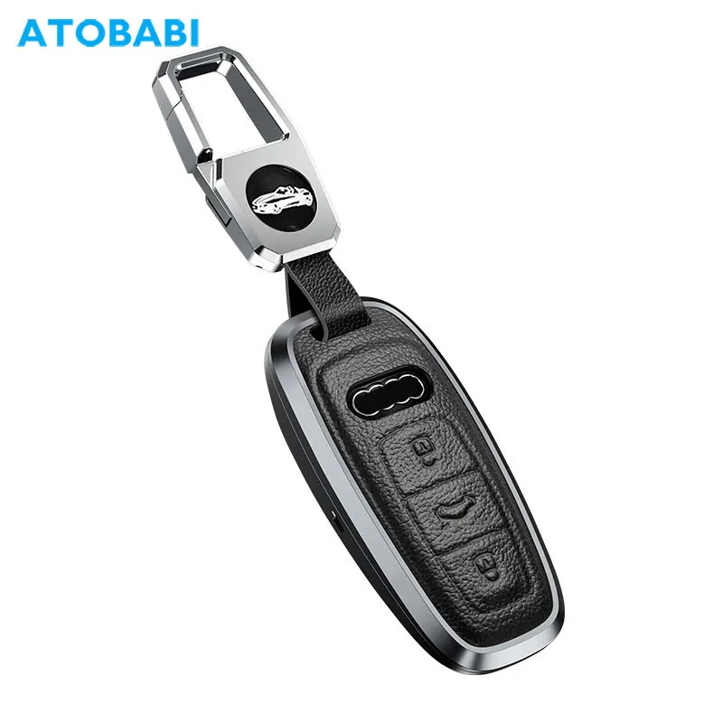 Чехол для автомобильного ключа из алюминиевого сплава с кожаной рамкой для Audi Q8 A8 A7 A6 Q7 S7 S6 E-Tron RS6 RS7 SQ7 SQ8