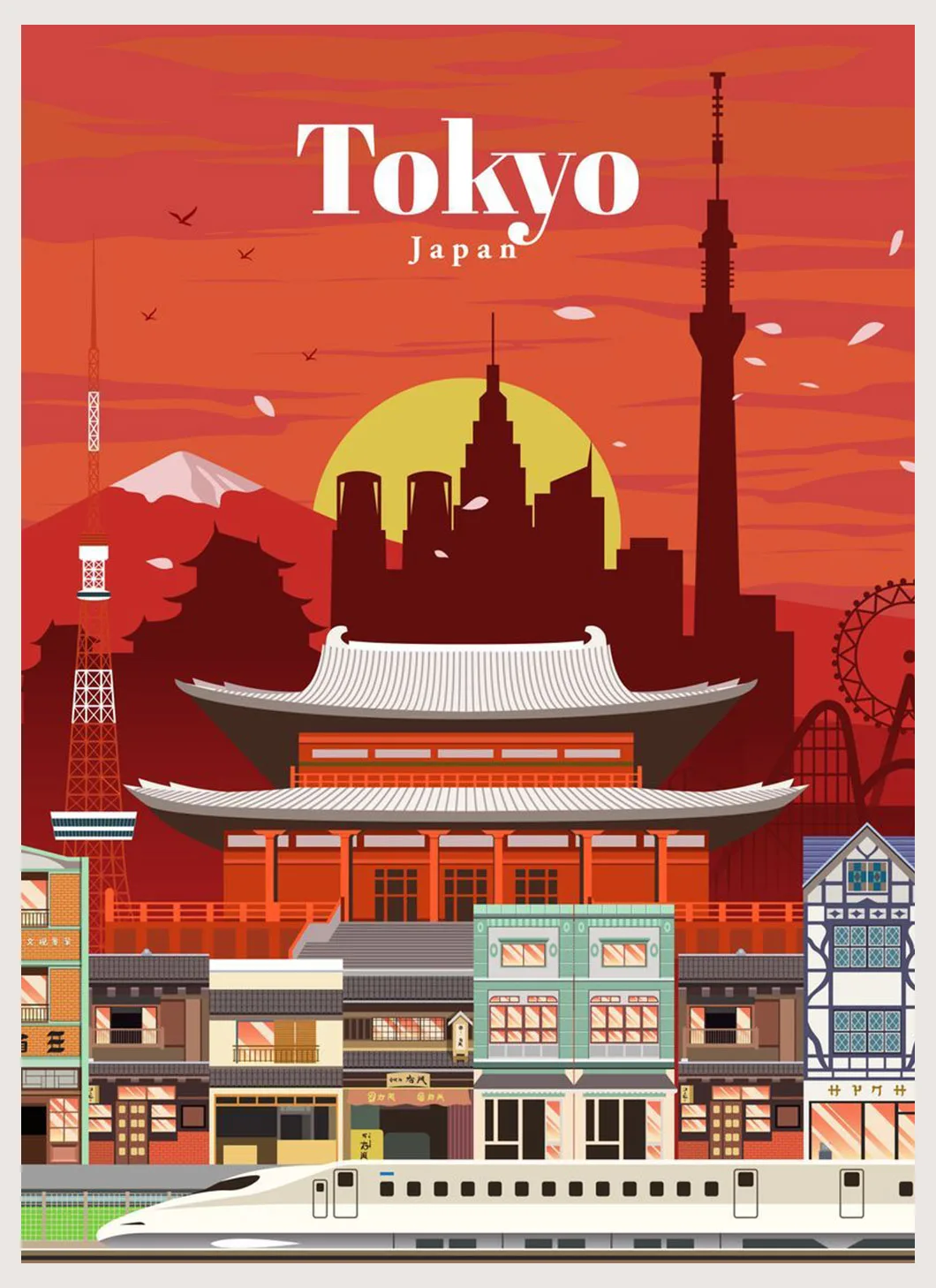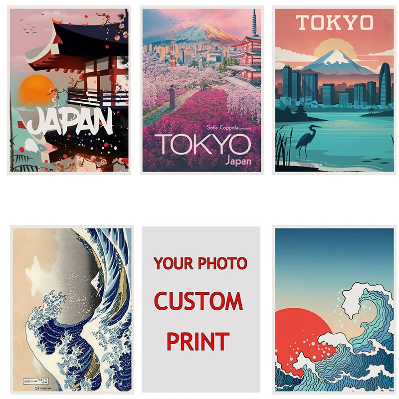 Японские рекламные плакаты с изображением Великой волны, канагава, волны, Токийский туризм, рекламные плакаты, украшение для комнаты, бара, наклейки на стену