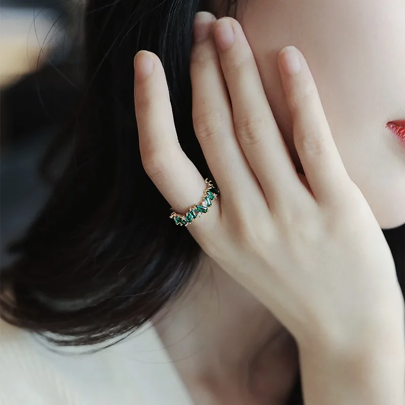 Новинка роскошные кольца с зеленым кристаллом для женщин Неоготичес...