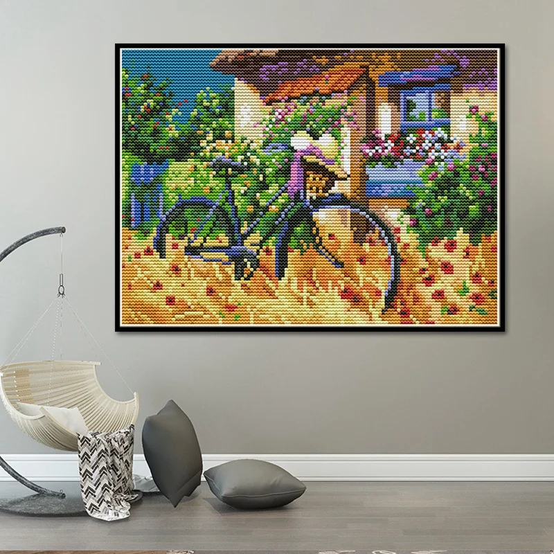 Наборы для вышивки крестиком штампованные для взрослых начинающих детей 11CT DIY Набор для вышивки рукоделия-велосипед 37X26cm