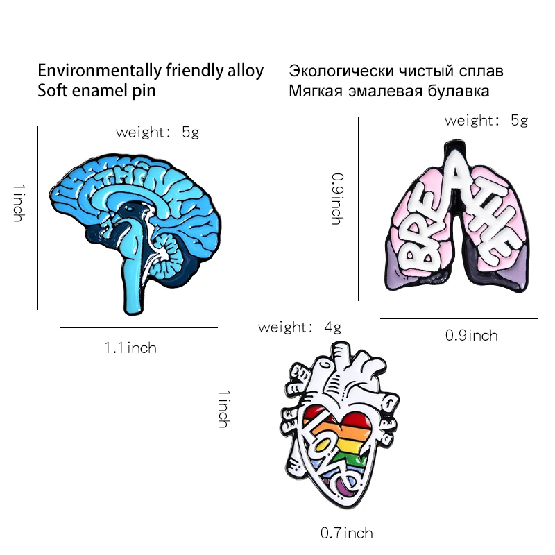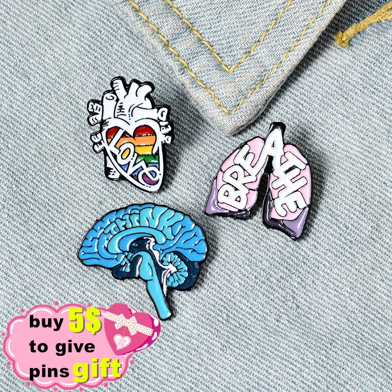 Индивидуальные эмалированные заколки на лацкан, Мультяшные заколки, сердце, легкие, мозг, значки, медицинские модные заколки, подарки для друзей, заколки, оптовая продажа