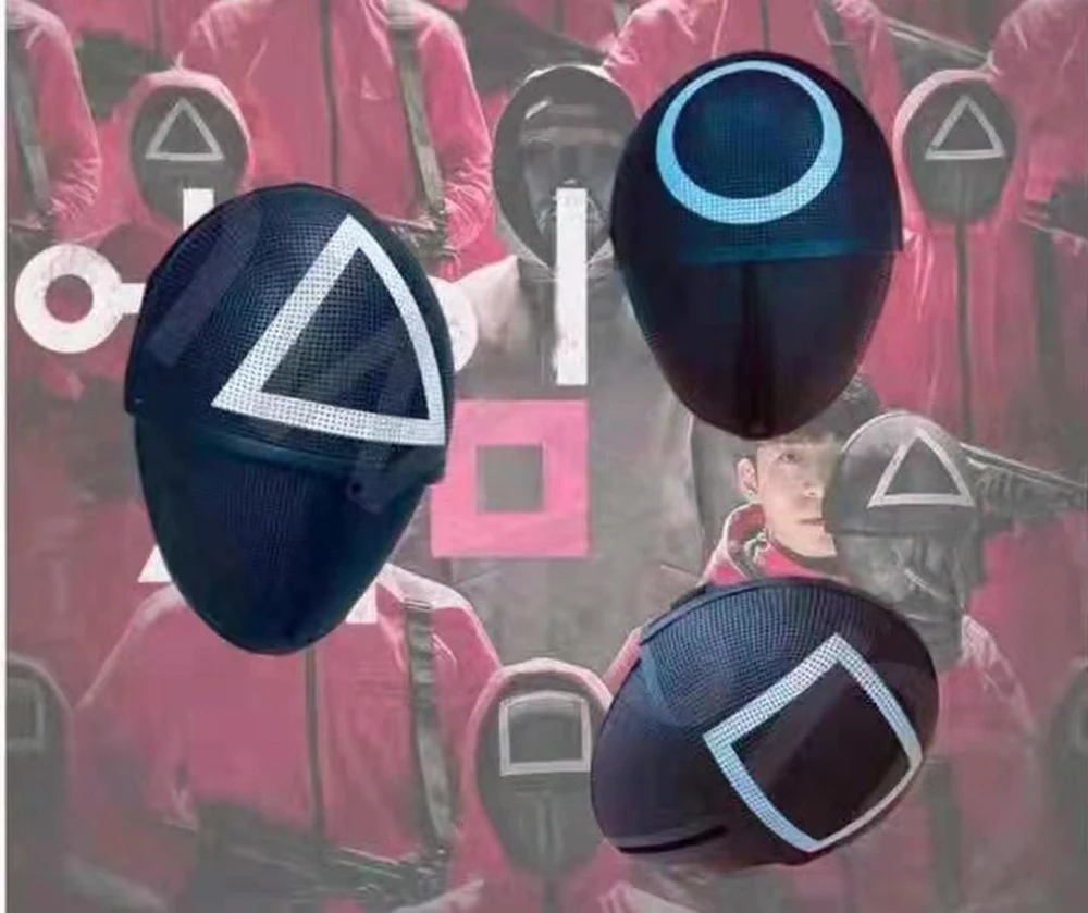 Высокое качество-маска для игры в кальмары есть четыре стиля, один и тот же стиль для мужчины в красном (треугольник, круг, квадрат) и та же черная маска, что и суперзлодей босс. Выберите свой любимый стиль и косплей вашей любимой фигуры в телевизоре.