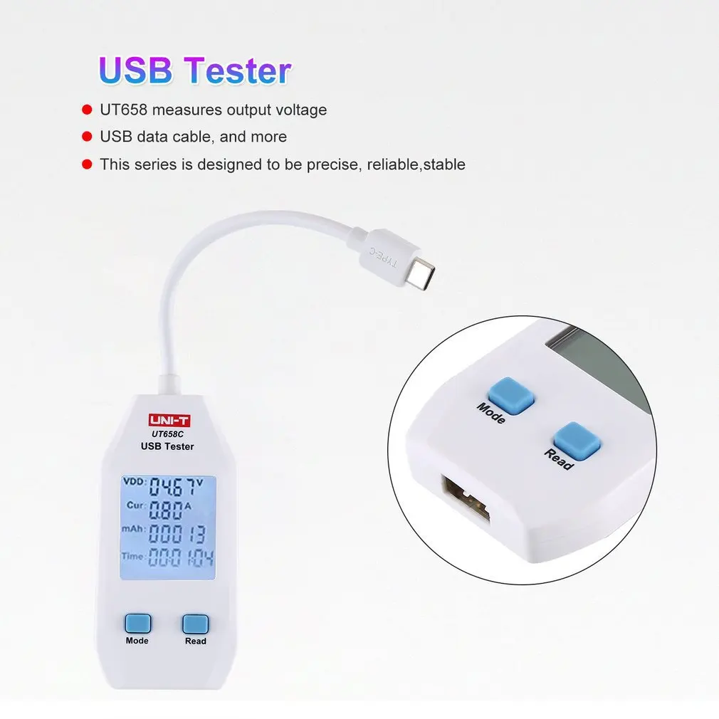 Цифровой USB-тестер UT658A, измеритель емкости и емкости для измерения напряжения и силы тока, с хранилищем данных