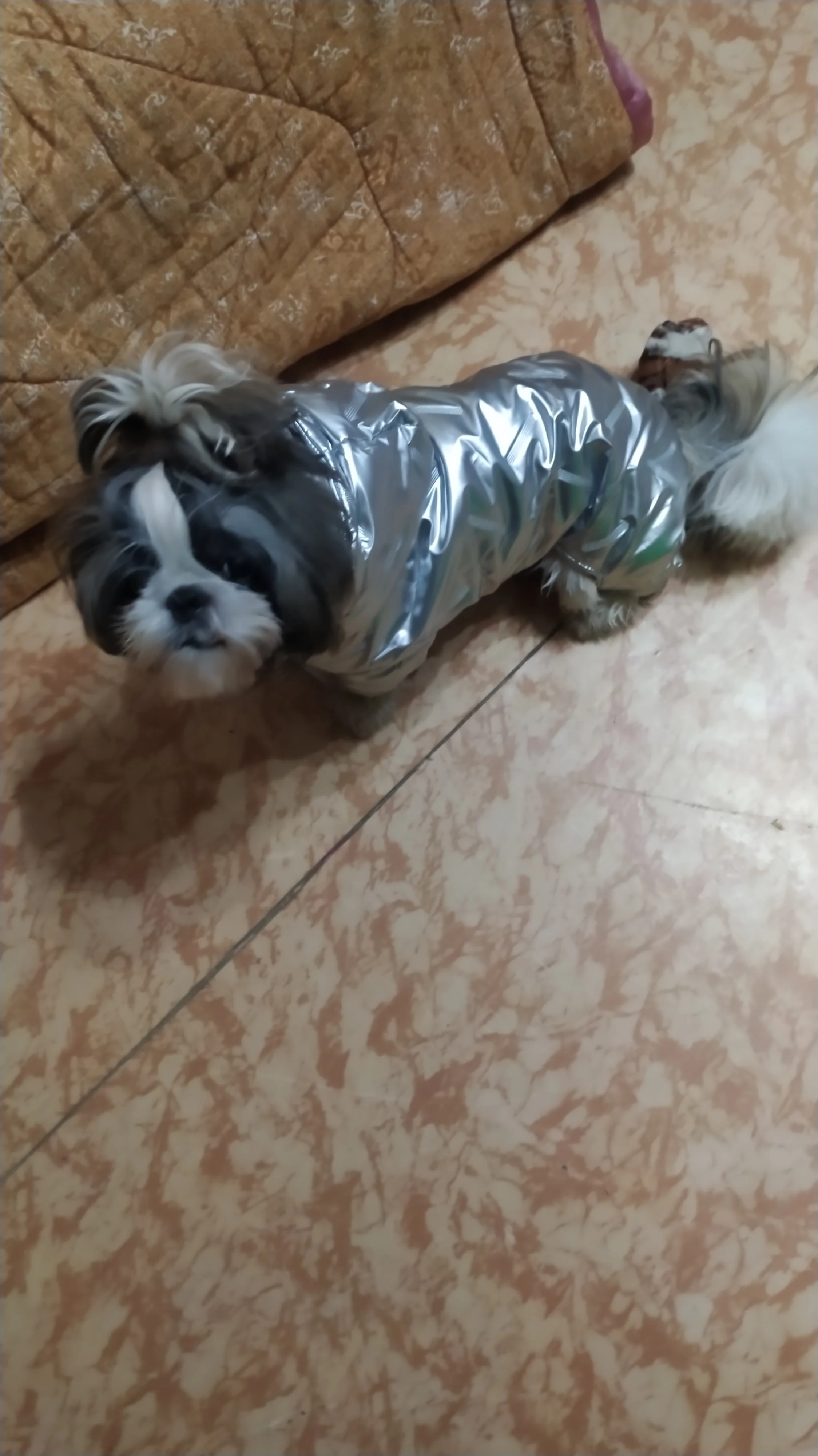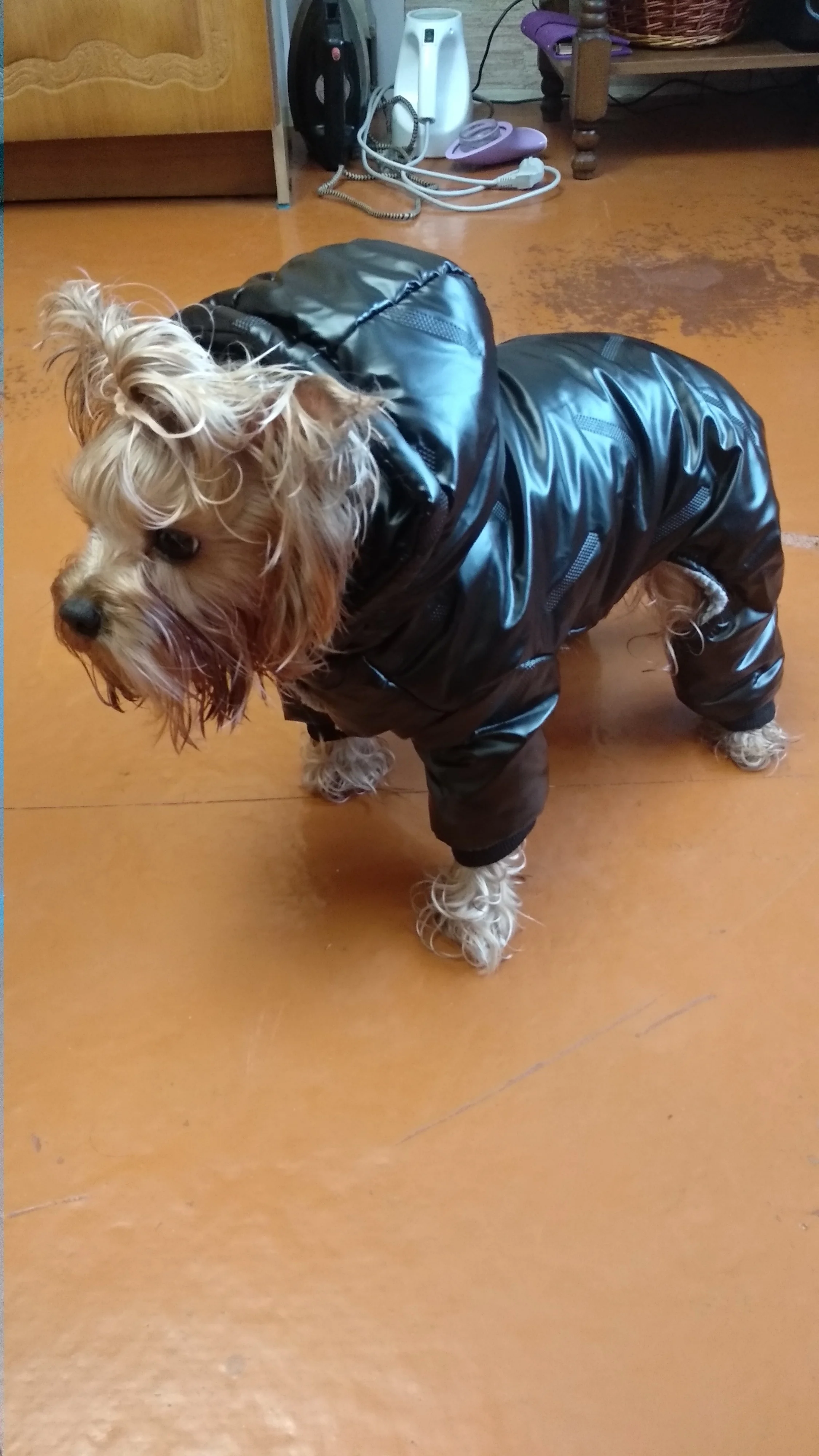 обалденный комбинезон, слов нет. Я очень люблю всё блестящее, поэтому я в восторге. Размер М на йорка весом 1 кг очень велик, но в принципе не ей и брался этот комбинезон, а вот тому, который весит 2 кг в самый раз. Спасибо огромное, успехов магазину!