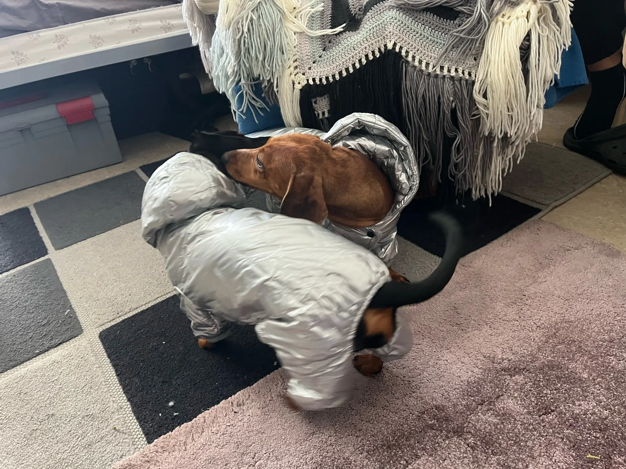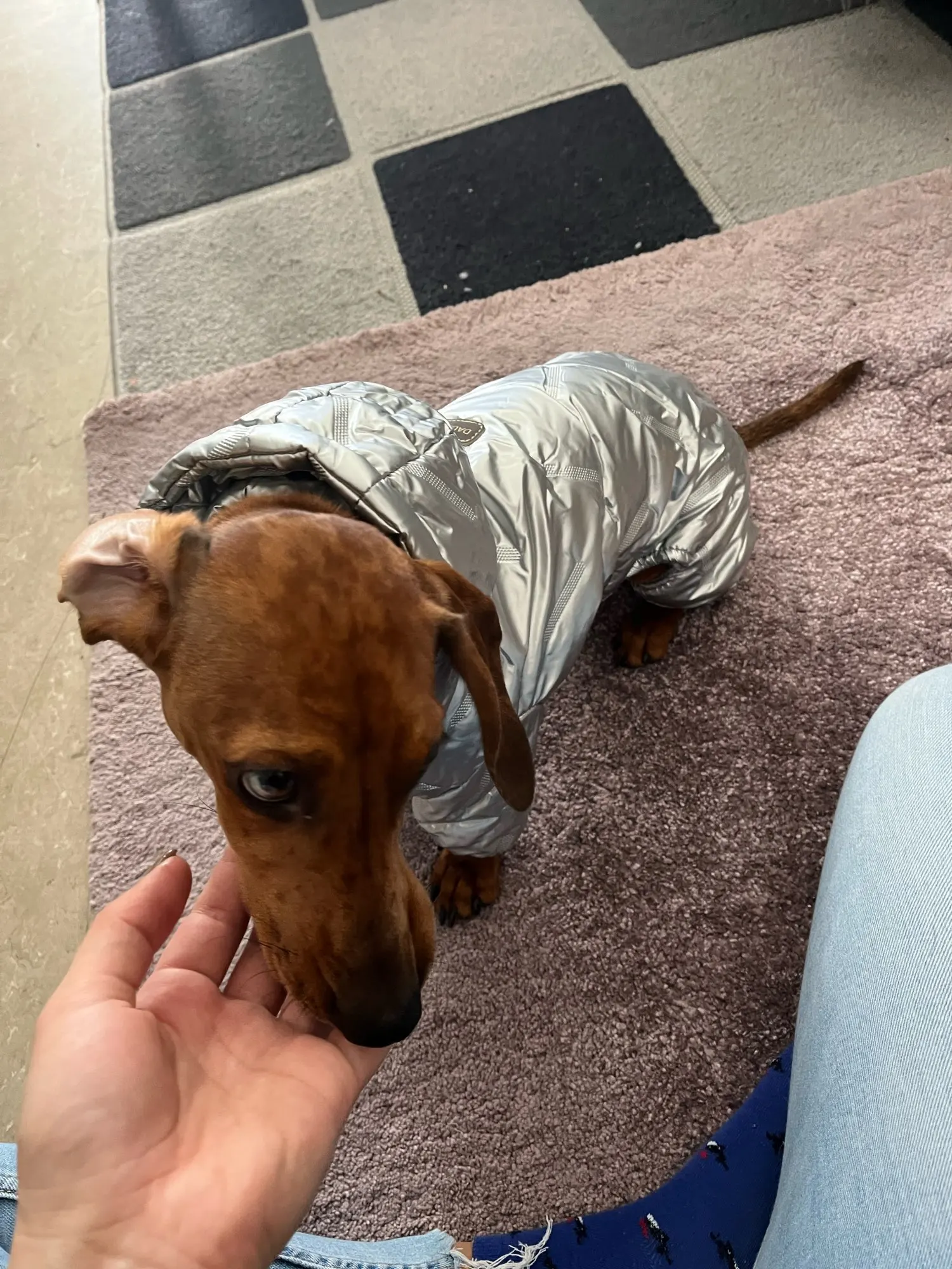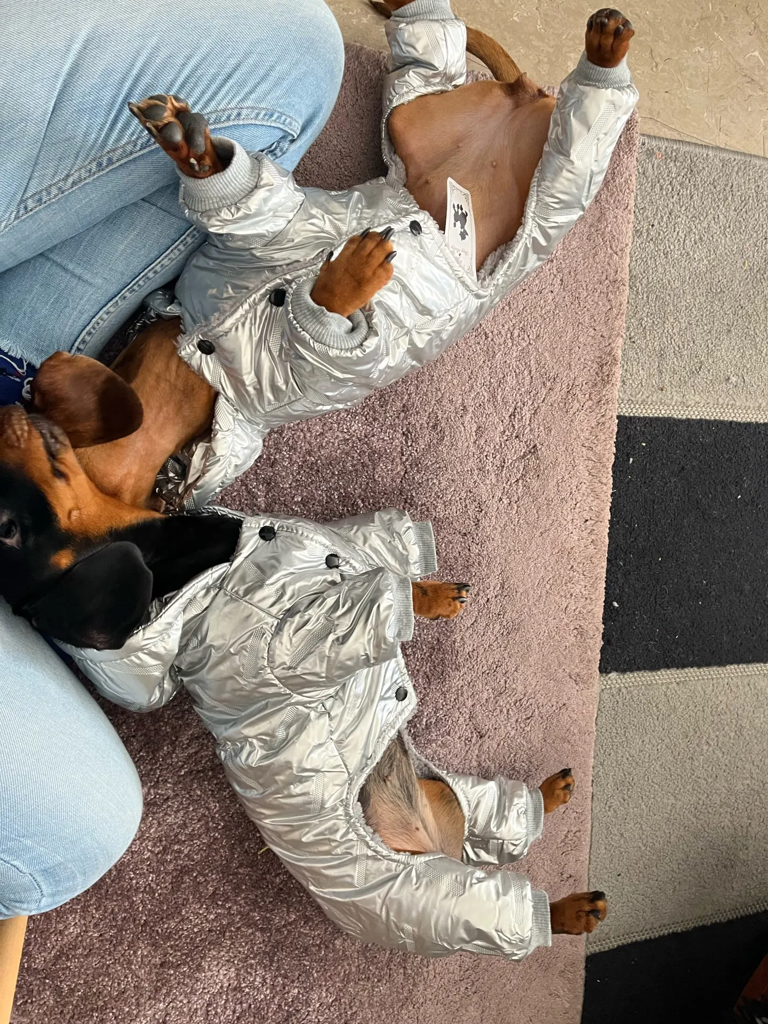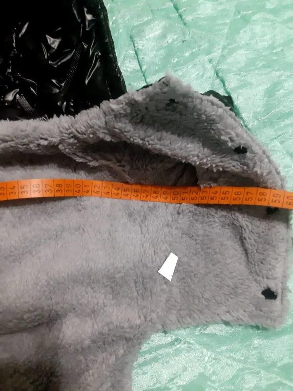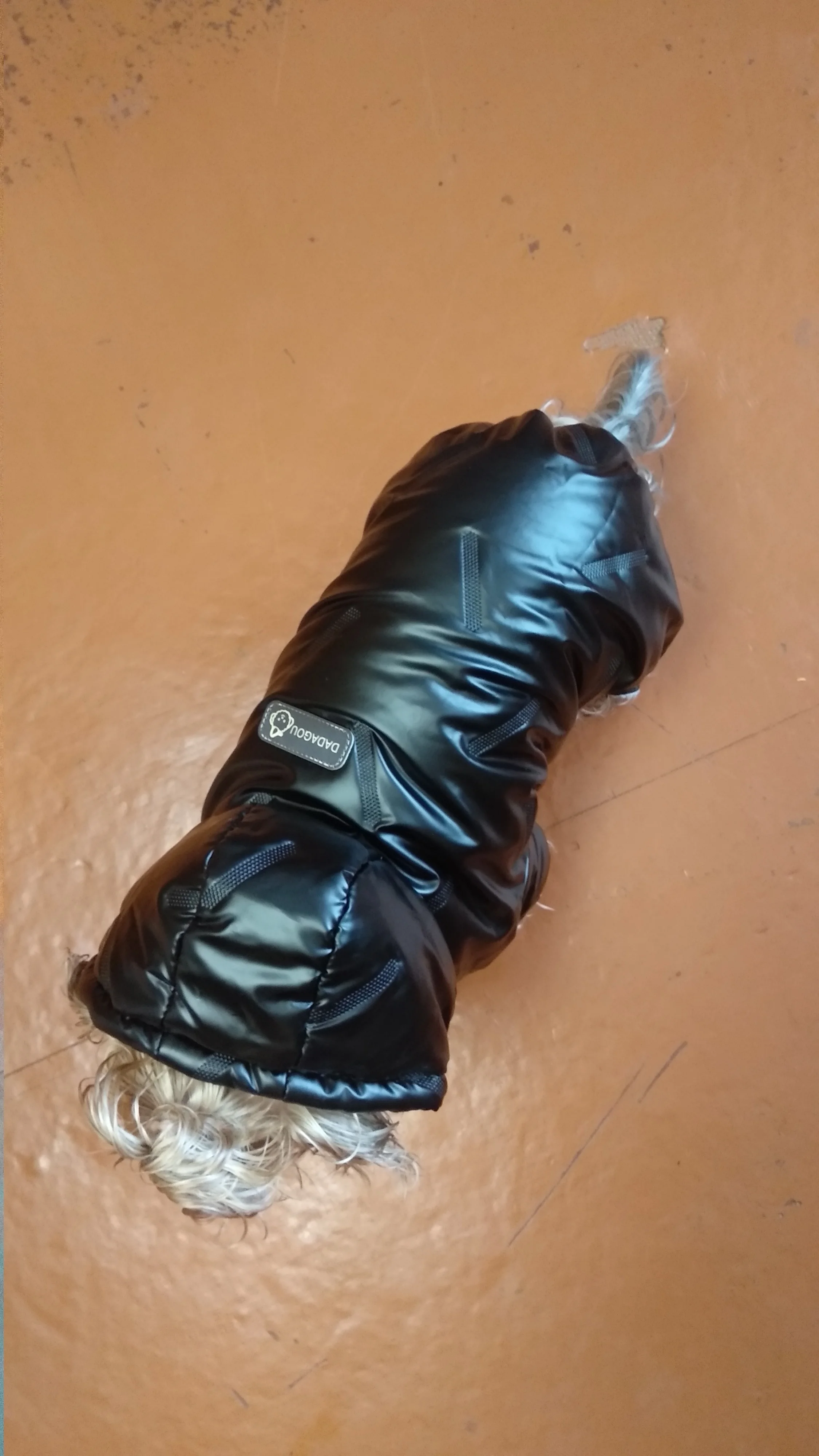Очень понравился комбинезон. Единственное, он шуршит при движении и мой малюк пока пугается. На той терьера весом 4,2кг , по спинке 35см заказала два размера Xl и XXl. Подошёл Xl. На фото замеры XXl Товар и продавца - рекомендую. Несмотря на сложившуюся ситуацию, доставка в Украину быстрая.