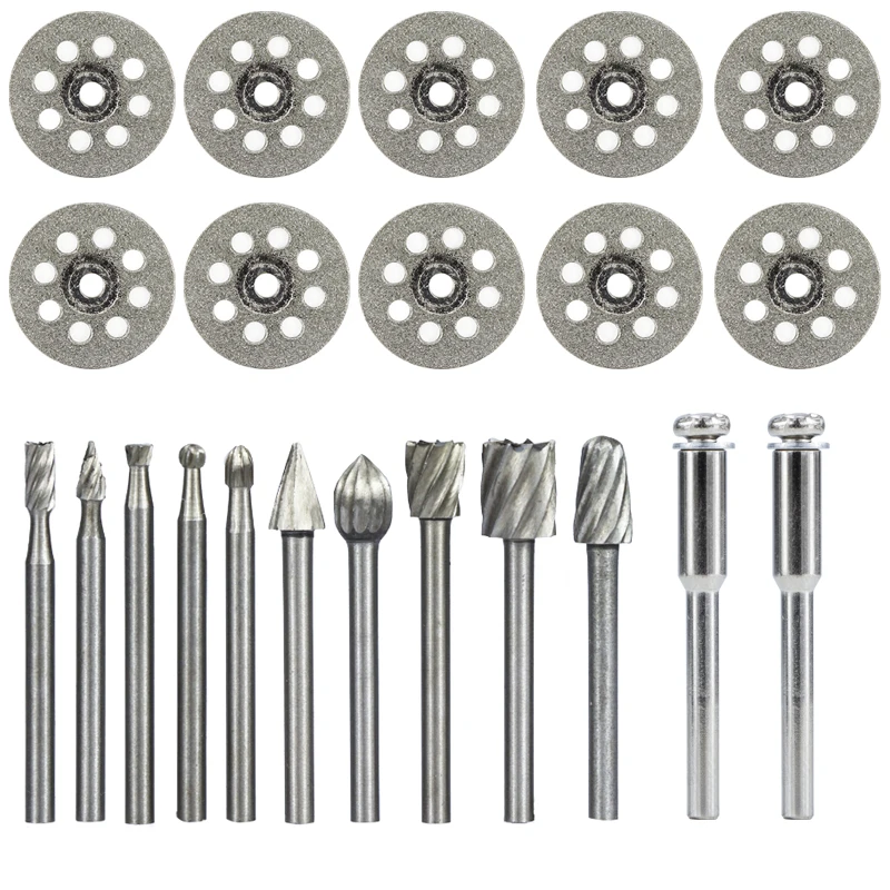 CMCP 22 шт. Алмазная режущая дисковая пила HSS Фрезерные сверла для вращающегося инструмента Dremel набор инструментов для резки камня и дерева