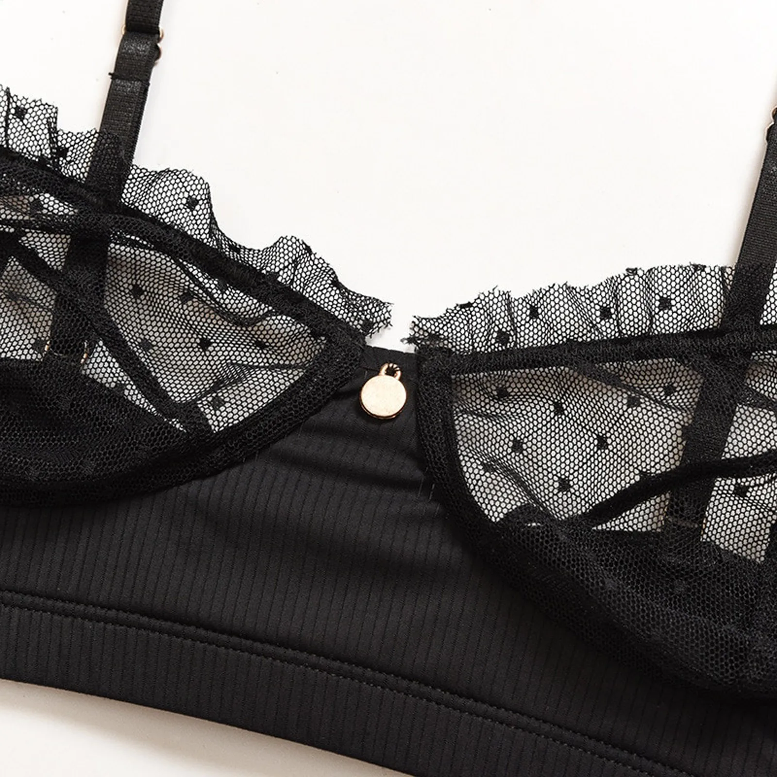Кружевное нижнее белье с оборками, нижнее белье, сексуальное женское нижнее белье, прозрачный бюстгальтер, комплекты вечерние, кружевное черное эротическое белье, экзотический сексуальный костюм