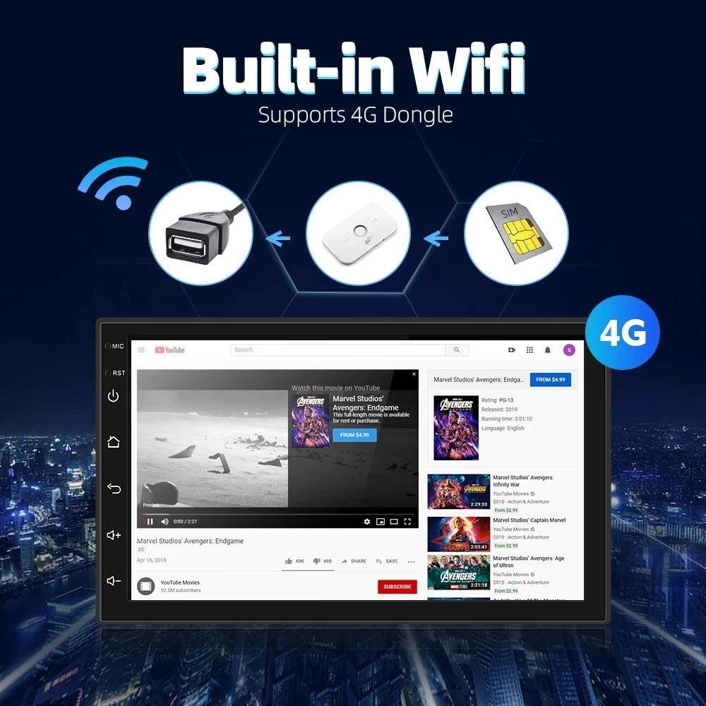 Автомагнитола 2DIN, мультимедийный плеер с Bluetooth, OBD2, 1 ГБ ОЗ...