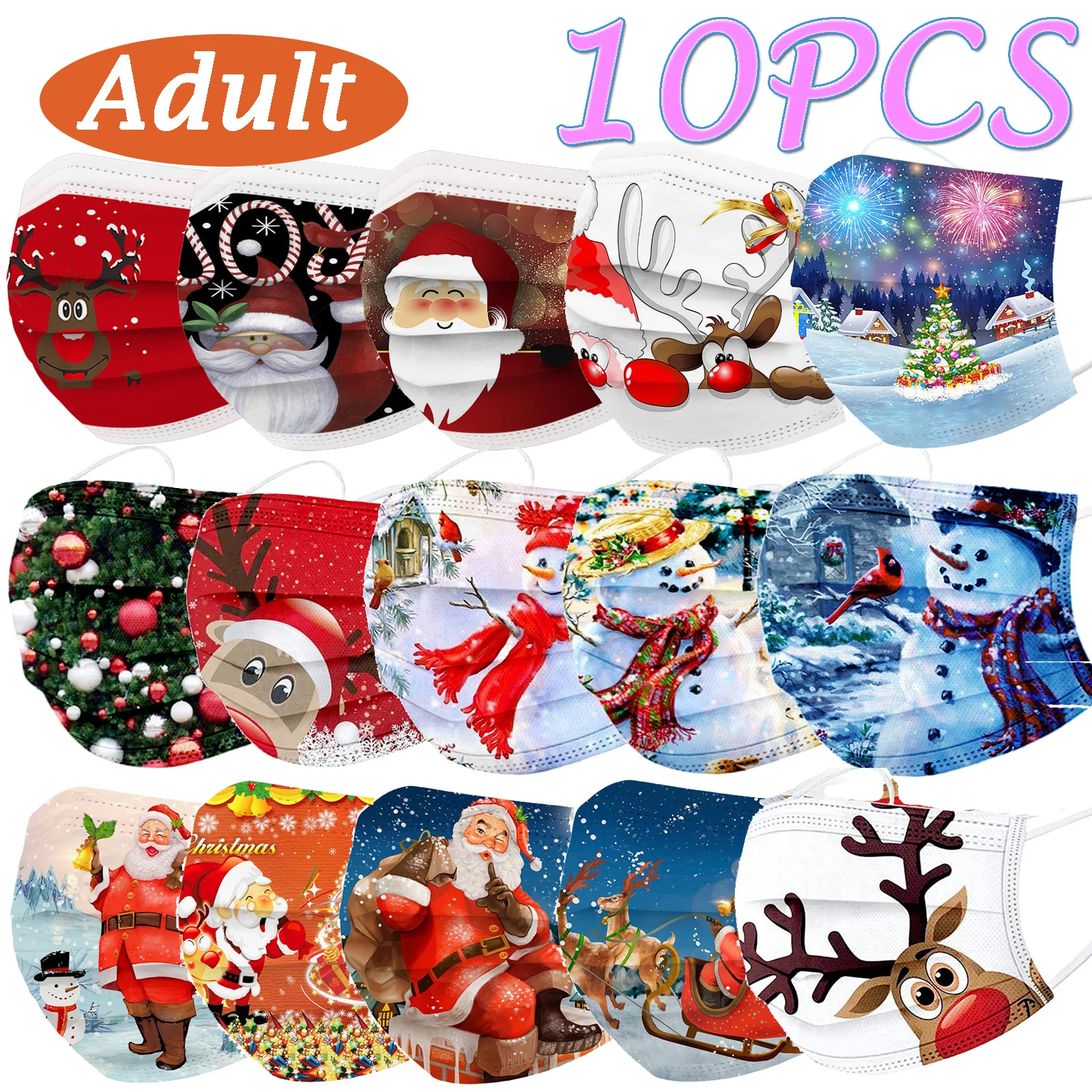 10 шт. одноразовая Маска для лица для взрослых, рождественские укра...