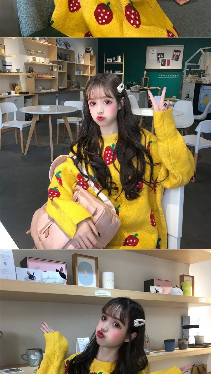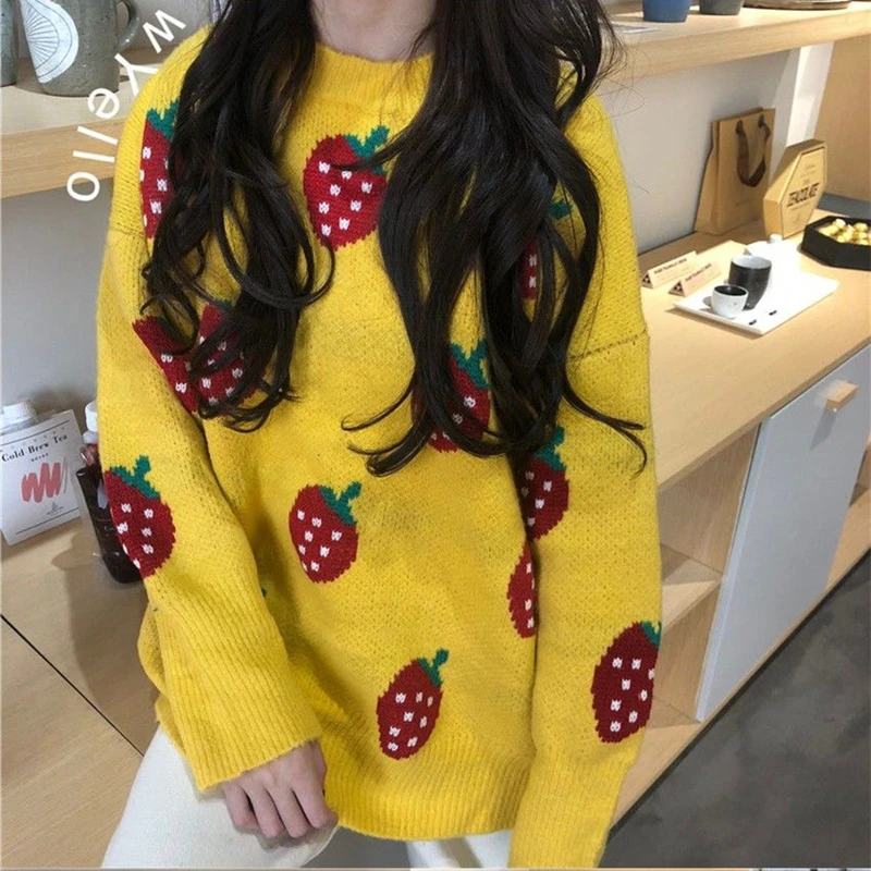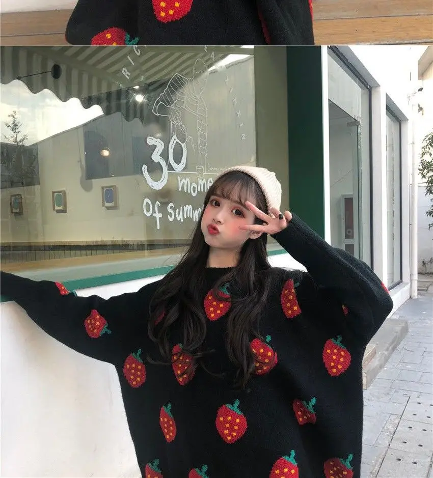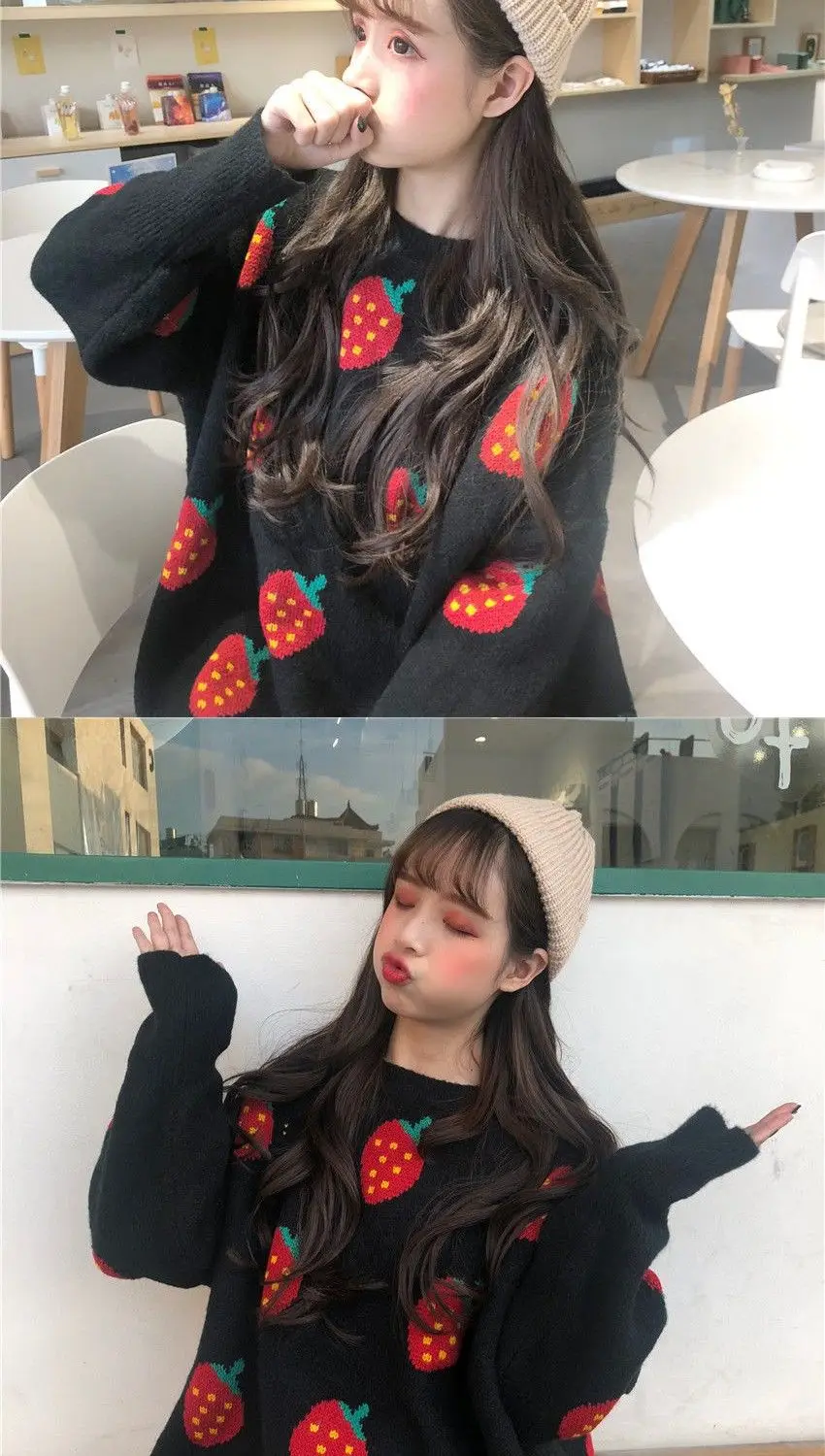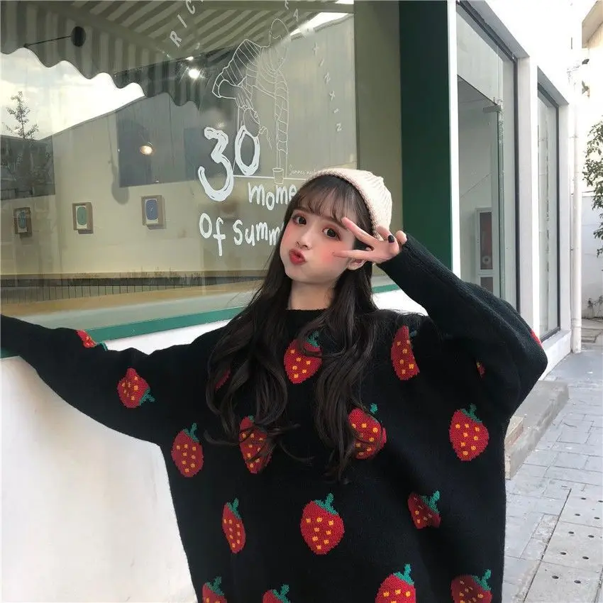 Свитер вязаный в японском стиле Харадзюку, милый свитер для девочек, Осень-зима 2021, кавайная одежда, женский свободный свитер, пуловер