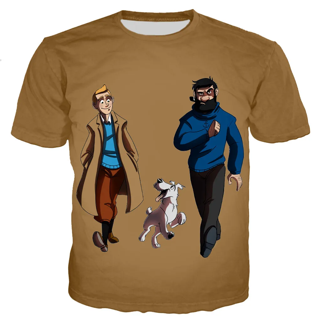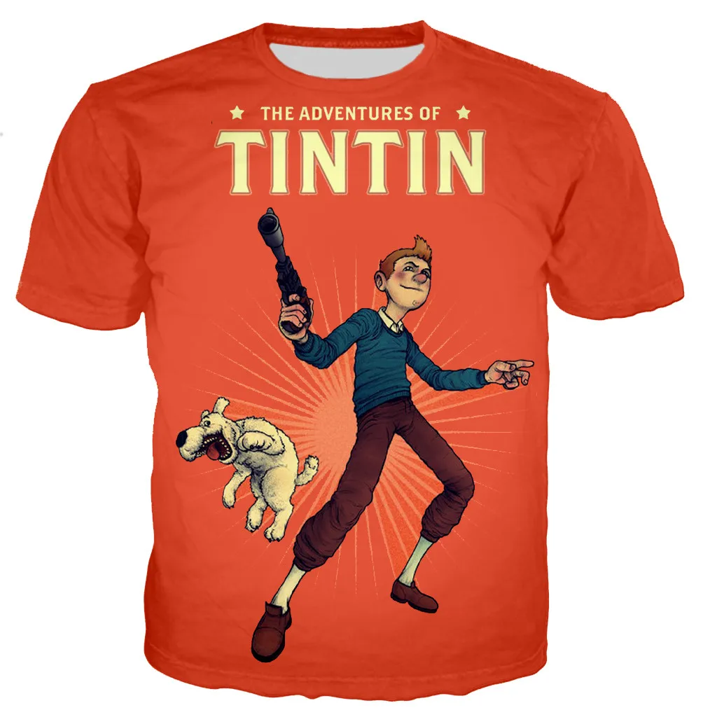 2021 летняя футболка для мальчиков и девочек с 3D Тинтин, модная фу...