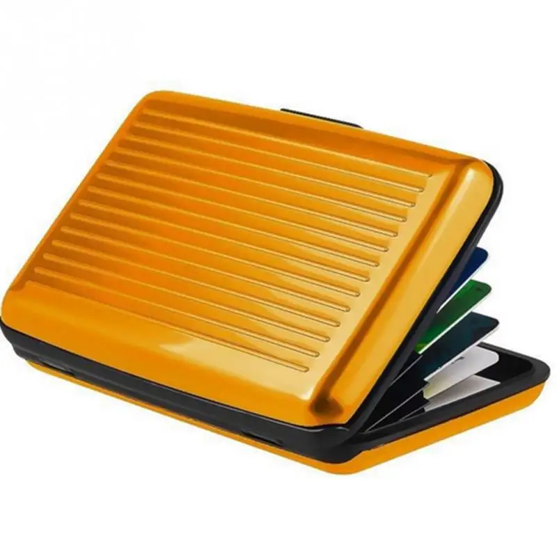 Мужской высококлассный алюминиевый чехол в полоску, блокирующий внешний аккумулятор, жесткий чехол, бумажник, твердая кредитная карта, защита от RFID-сканирования