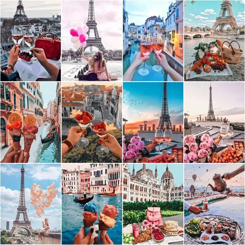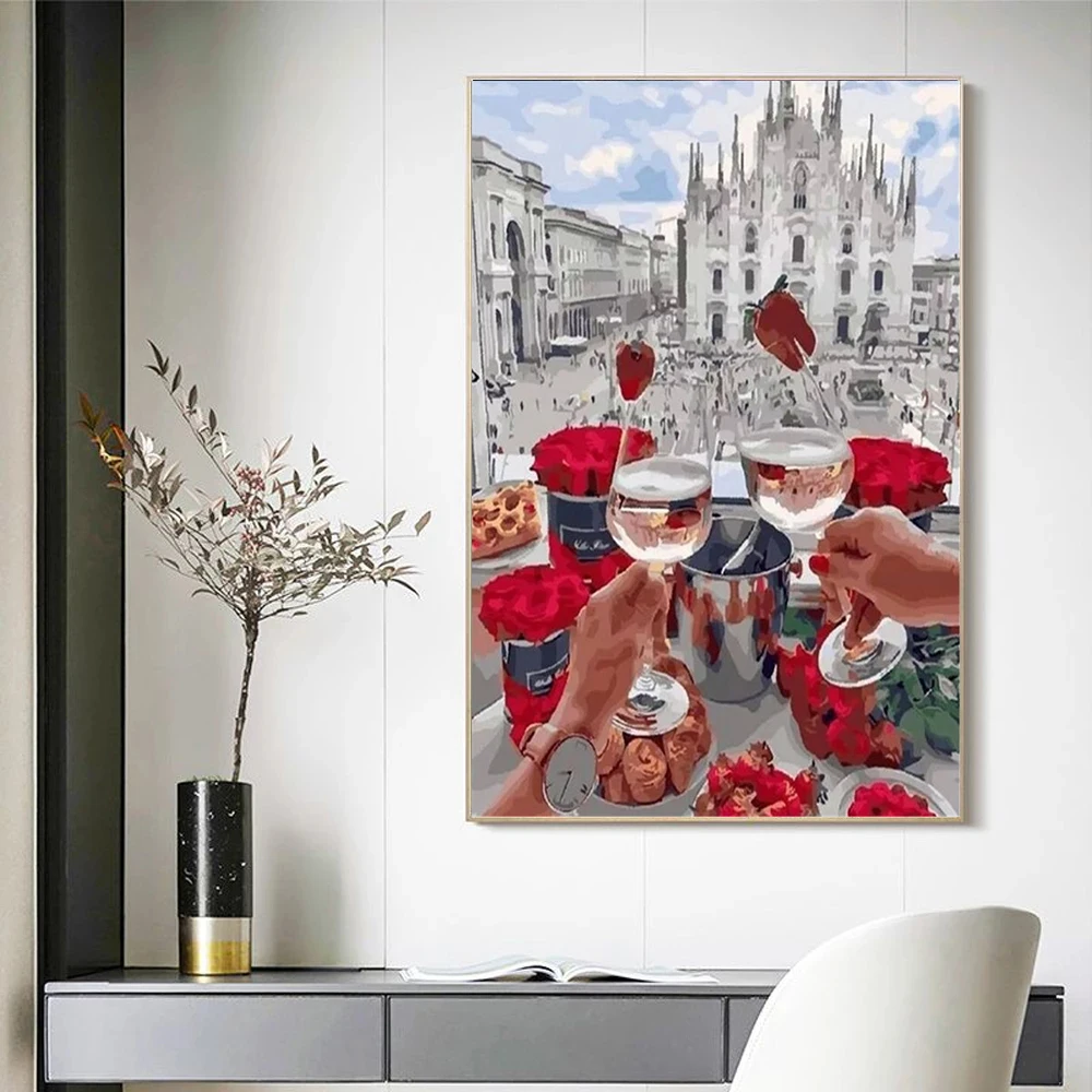 CHENISTORY Diy Краска по номерам, винный бокал, пейзаж, рисование на холсте, ручная роспись, краска, Diy городской пейзаж, картины по номерам H