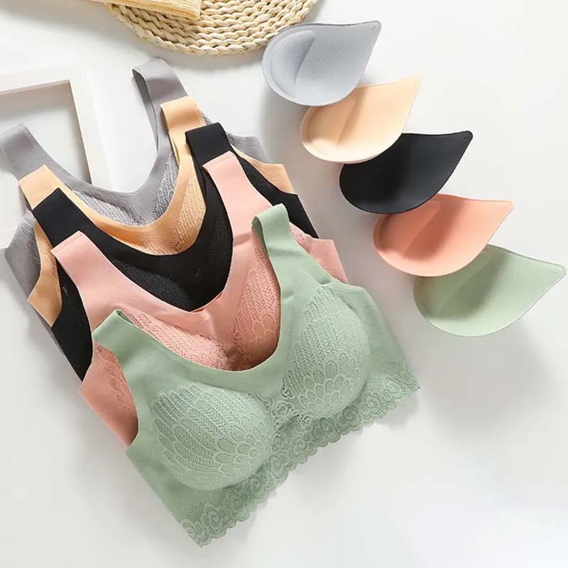 Бесшовное нижнее белье, охлаждающий бюстгальтер, соблазнительный кружевной бюстгальтер с подушечками и защитой от ударов, красивое нижнее белье, мягкий тайский латекс 6,0