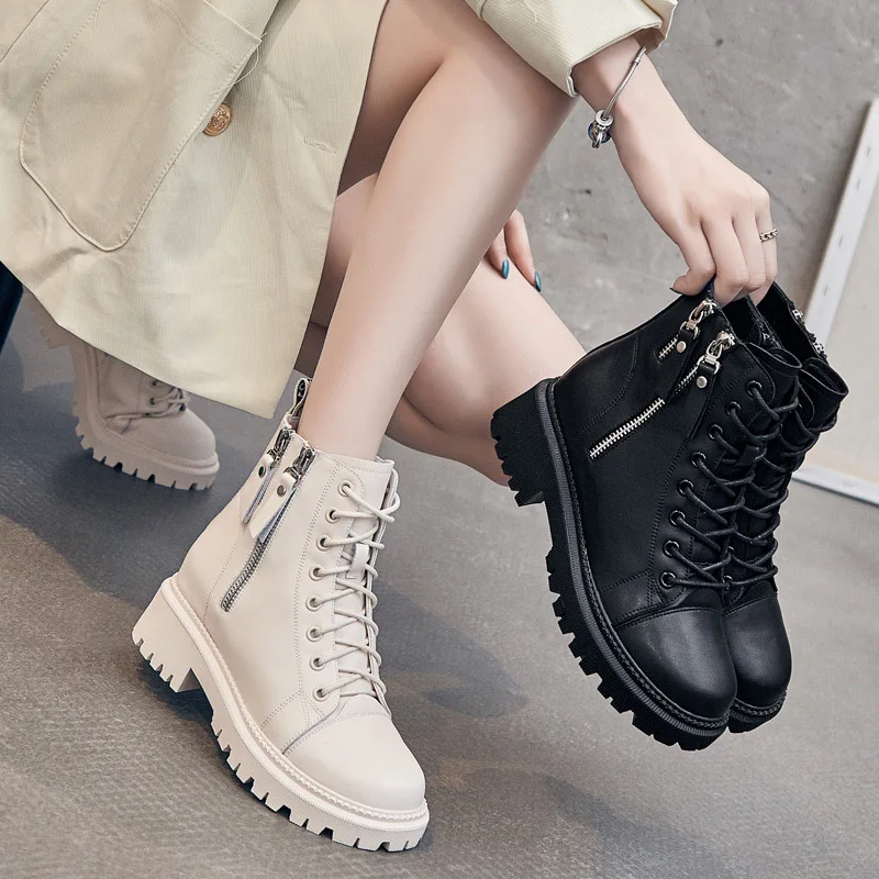 Ботинки из натуральной кожи, женские полуботинки мартинсы на платформе и каблуке, женская дизайнерская обувь, женские ботинки на массивной подошве для женщин, 2021