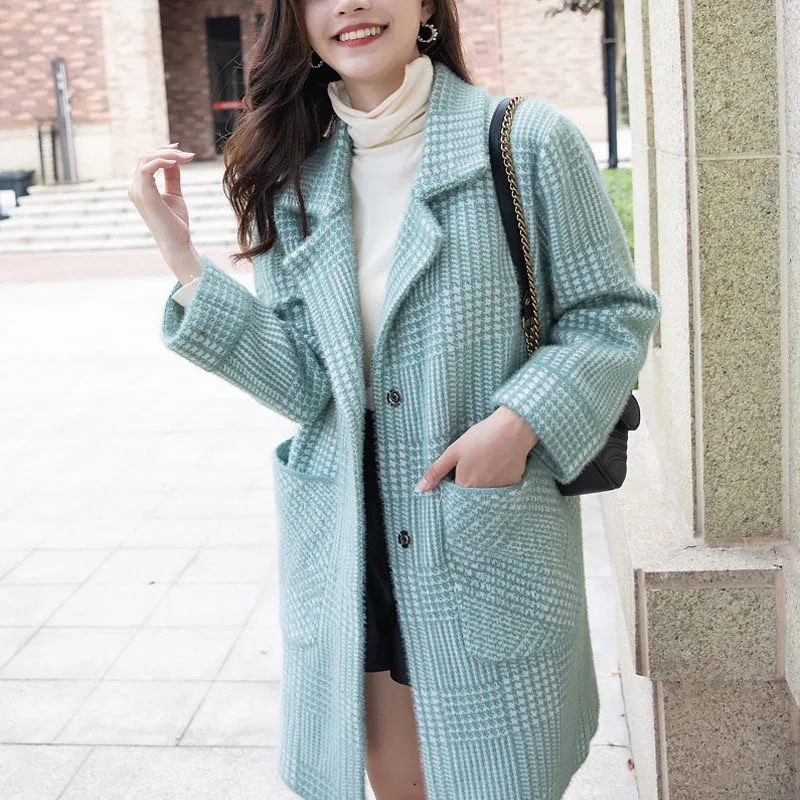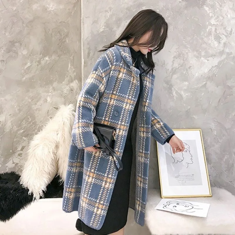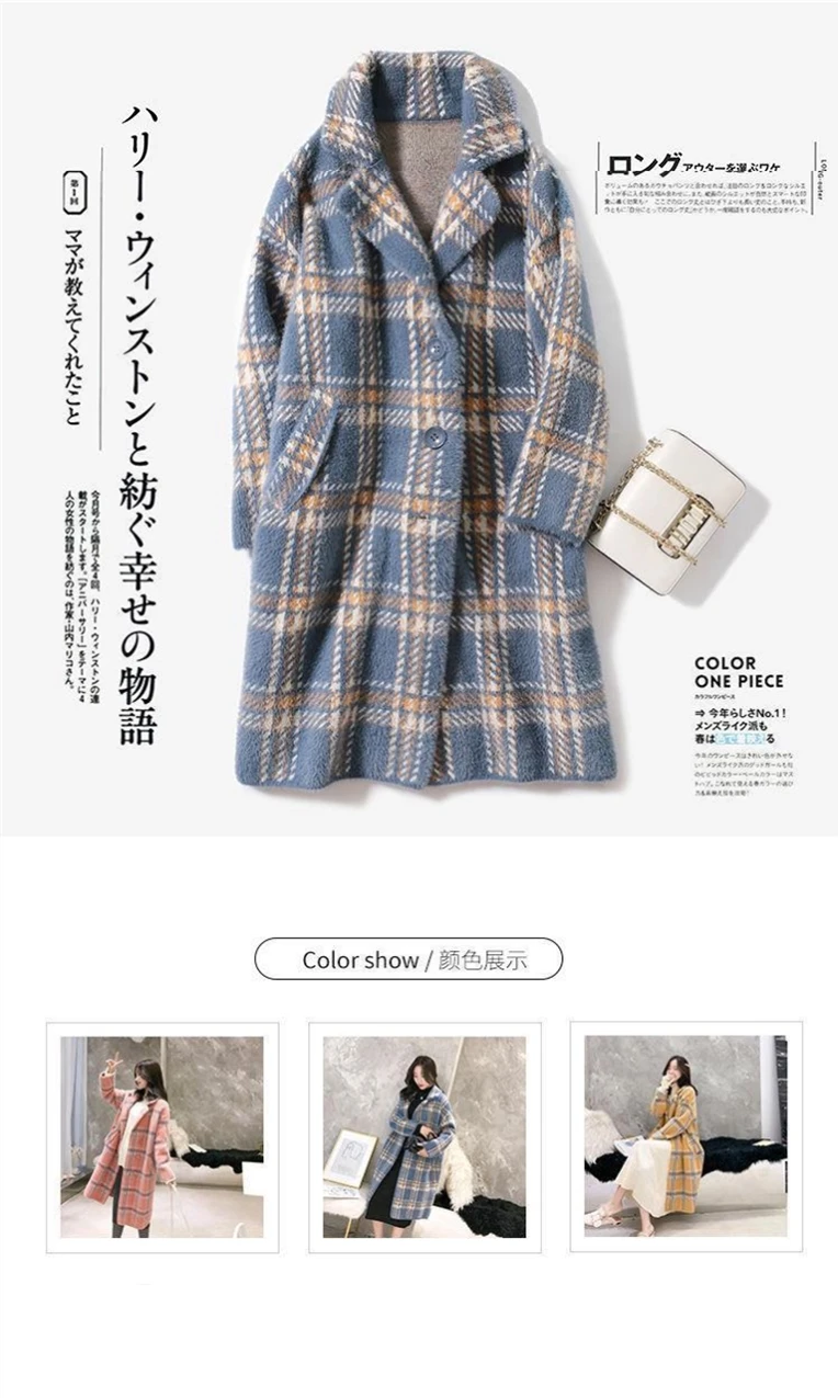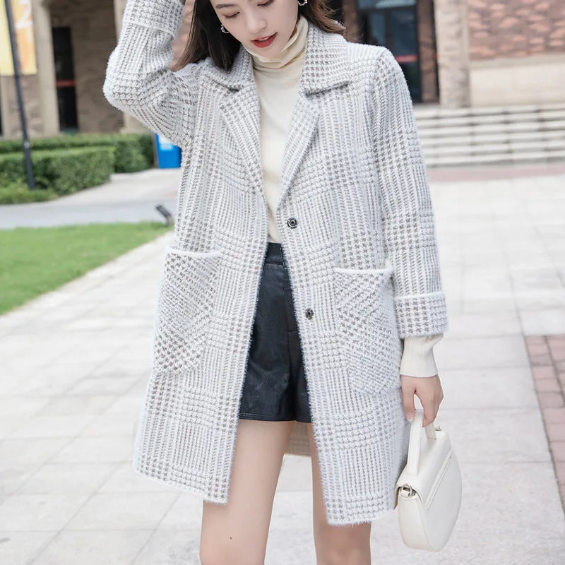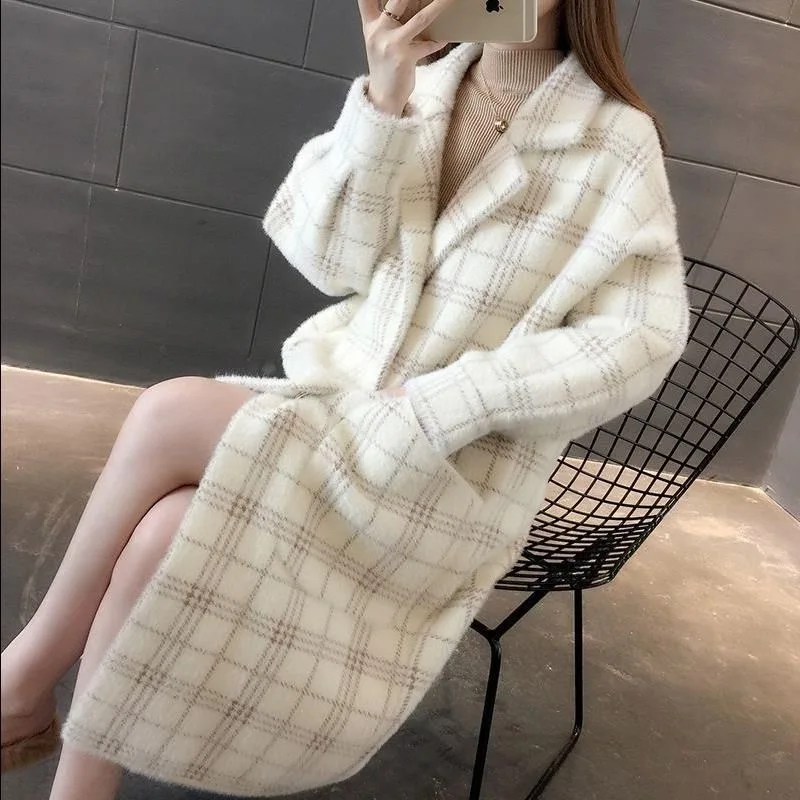 Пальто из искусственной норки и бархата в клетку для осени и зимы, Новая женская ветровка, теплое и ветростойкое удобное шерстяное пальто