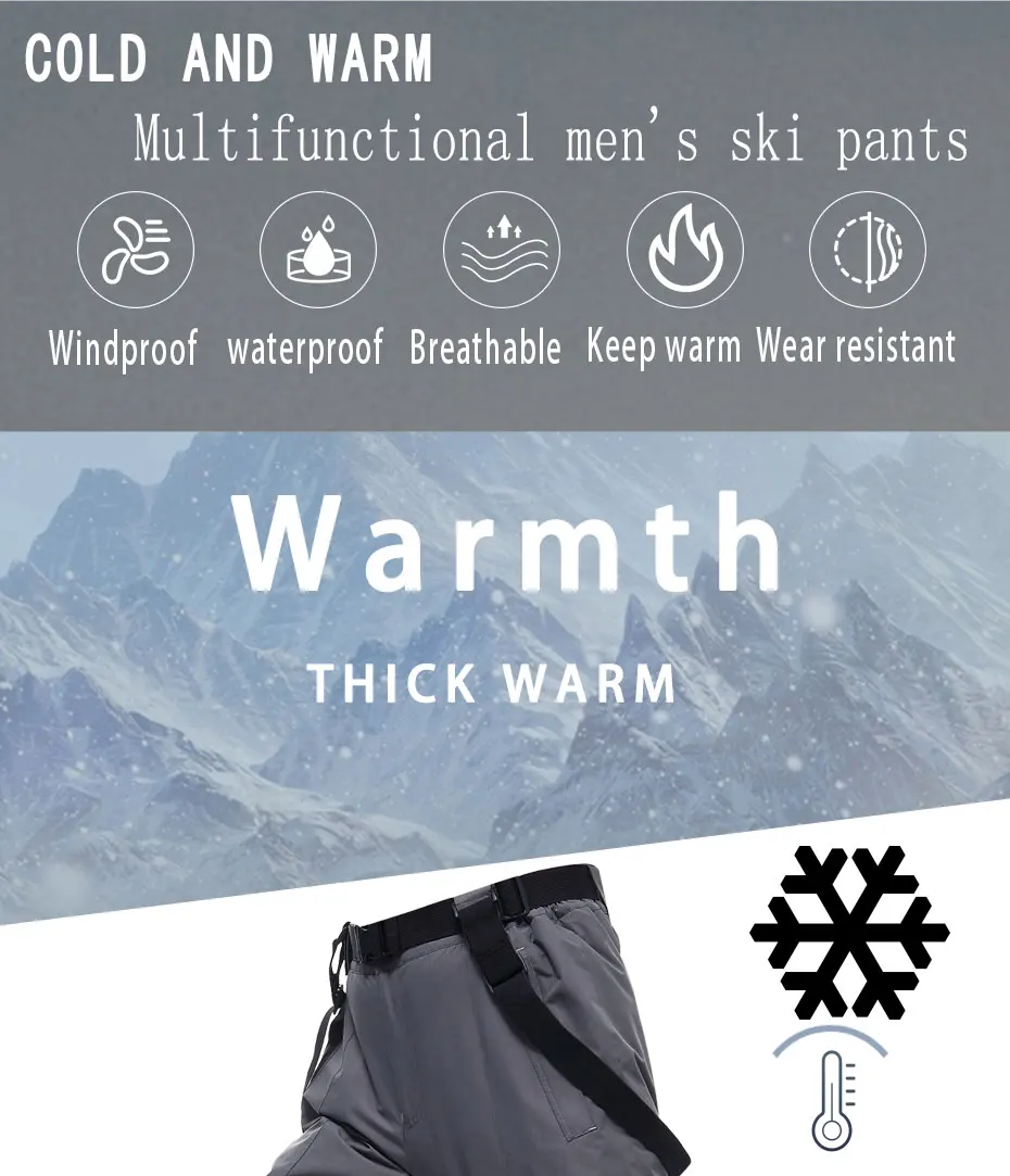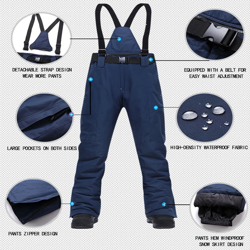 Мужские лыжные брюки брендовые Новые Теплые уличные спортивные водонепроницаемые плотные женские зимние брюки подтяжки зимние брюки для сноуборда для мужчин