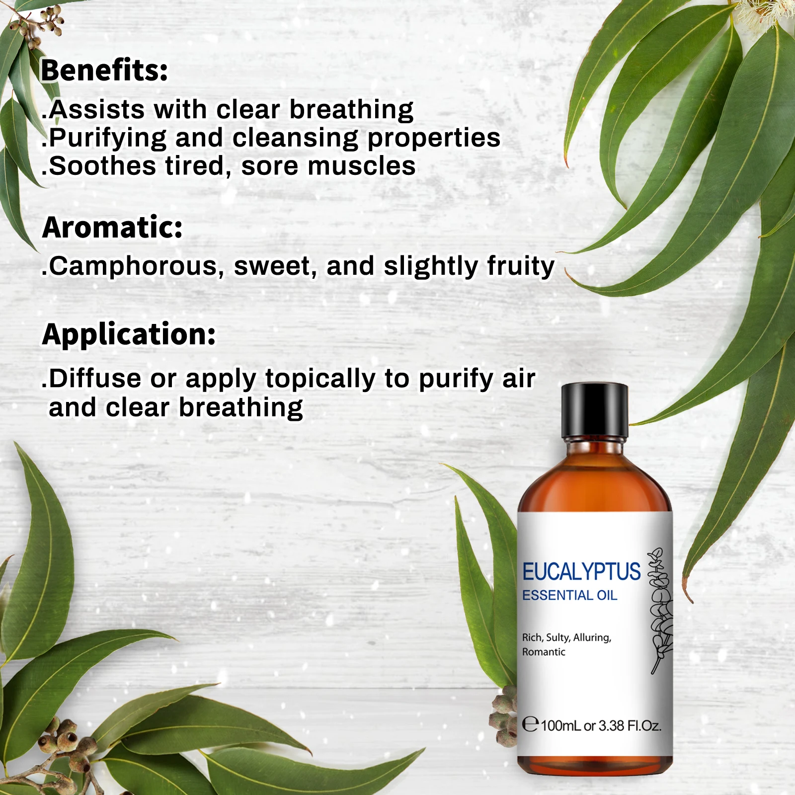 Эфирное масло эвкалипта HIQILI, 100% натуральная растительная терапия, диффузор для ароматерапии, предотвращает простуду и улучшает дыхательную систему