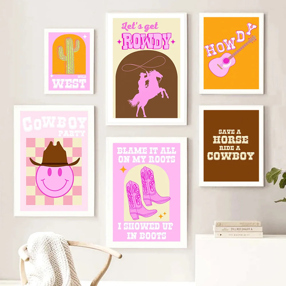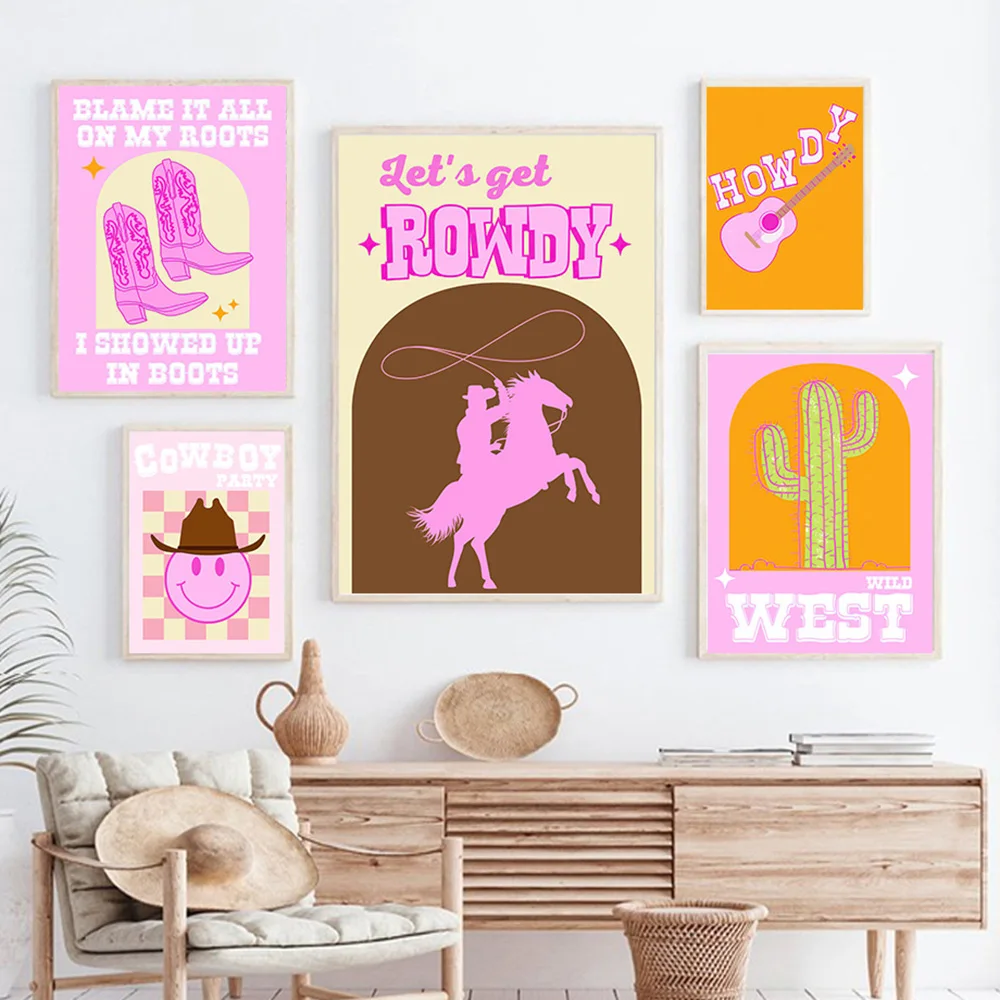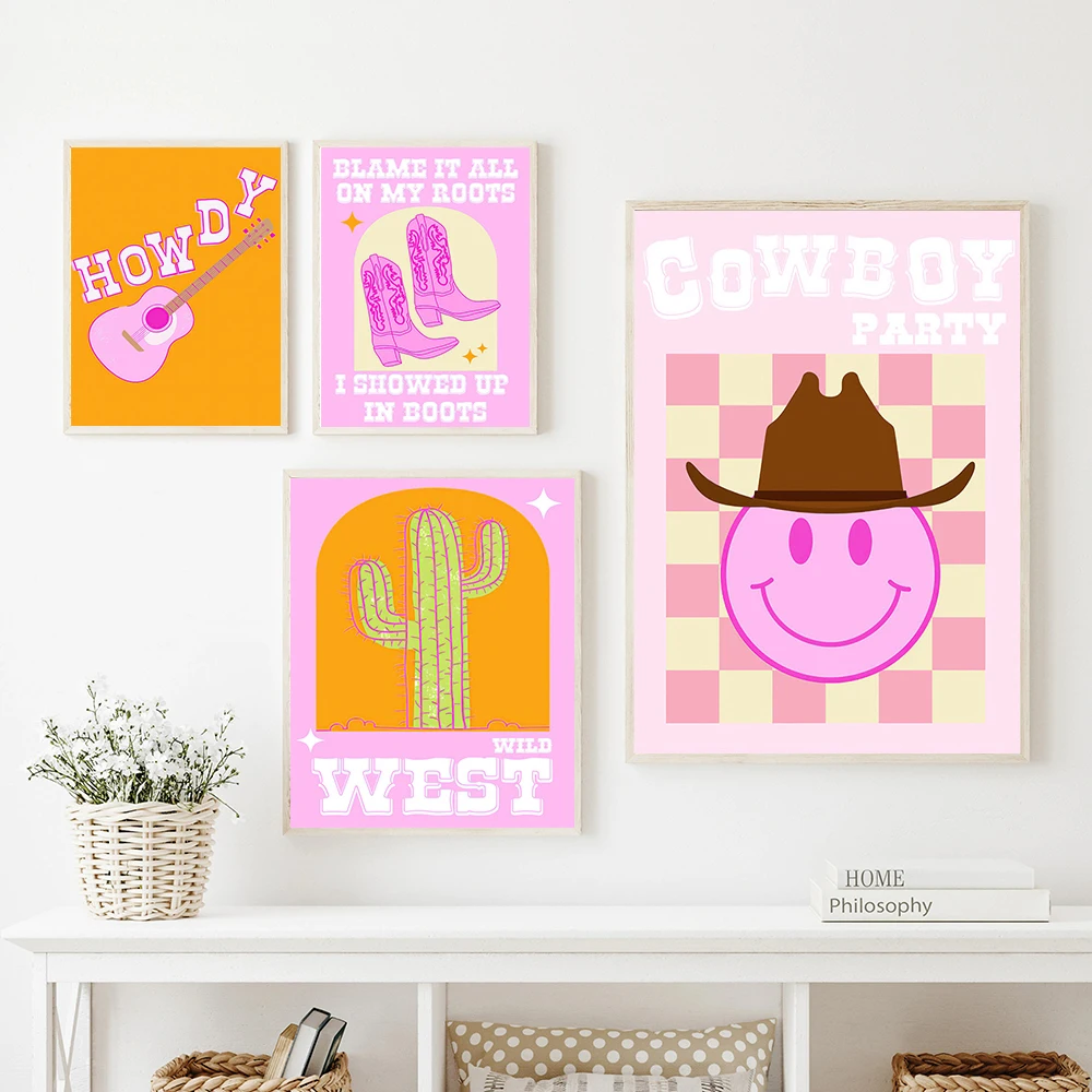 Настенный ковбойский плакат с забавными ботинками и гитарой Cactu, скандинавский абстрактный рисунок на холсте, картины для гостиной, домашний декор