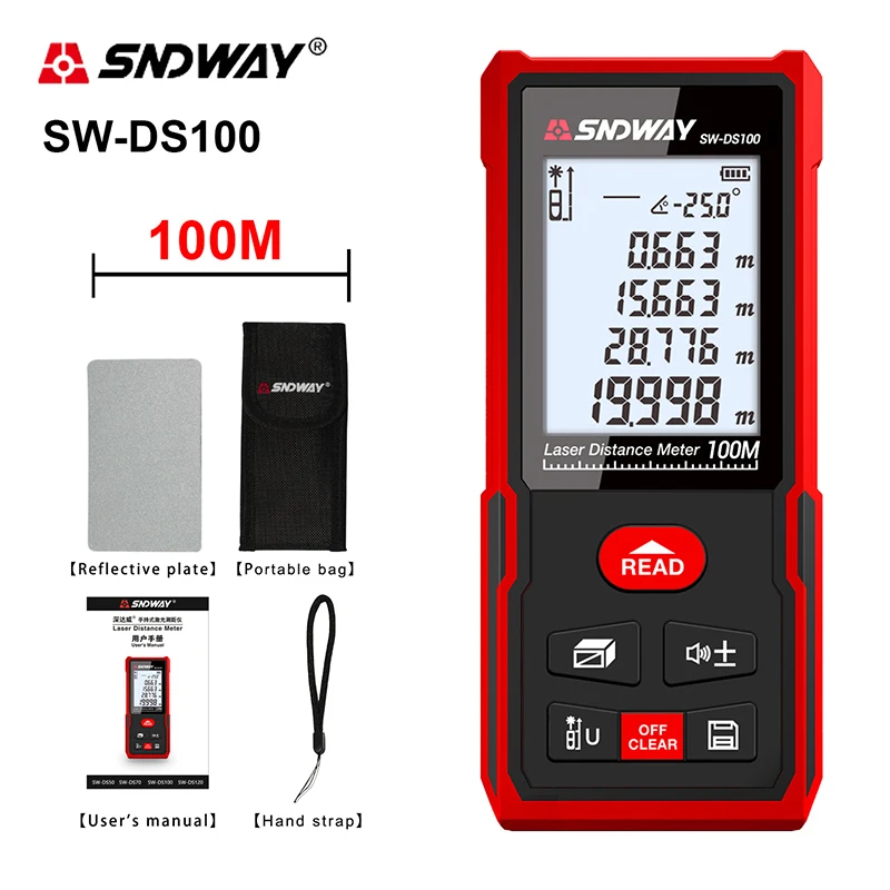 1 * Лазерный метр1 * Портативная сумка1 * ручной ремешок1 * Руководство пользователя1 * отражающая пластина