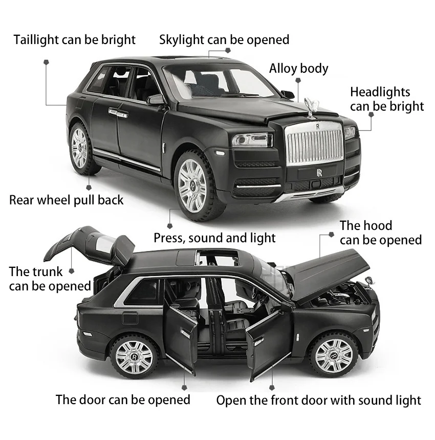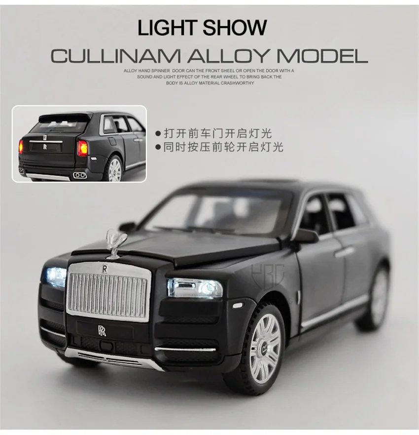 1:32 Rolls Royce Cullinan, металлическая игрушка, внедорожники со светильник кой, фотообои для мальчиков, детские подарки
