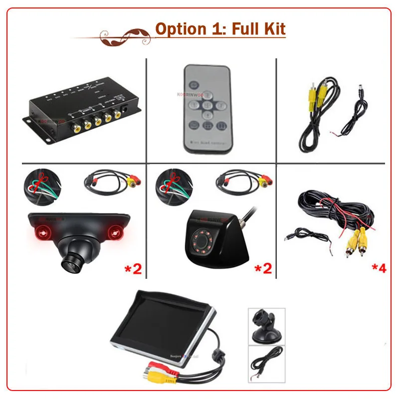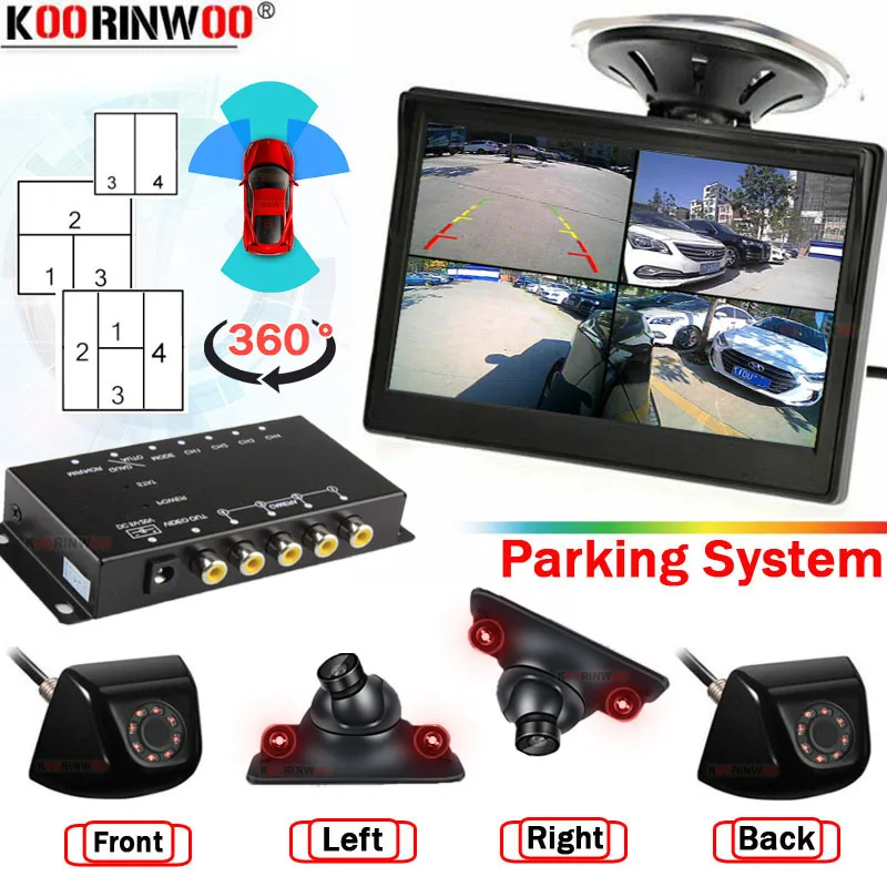 Koorinwoo 360 панорамный 4 канала видеосъемки переключатель передней камеры s правая левая БОКОВАЯ камера монитор заднего вида ЖК-экран лобовое стекло