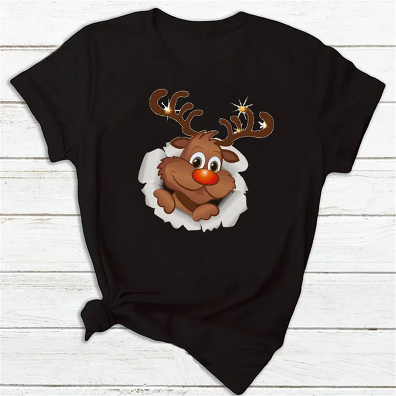 Женская футболка с рождественским принтом, топ с мультяшным принтом...