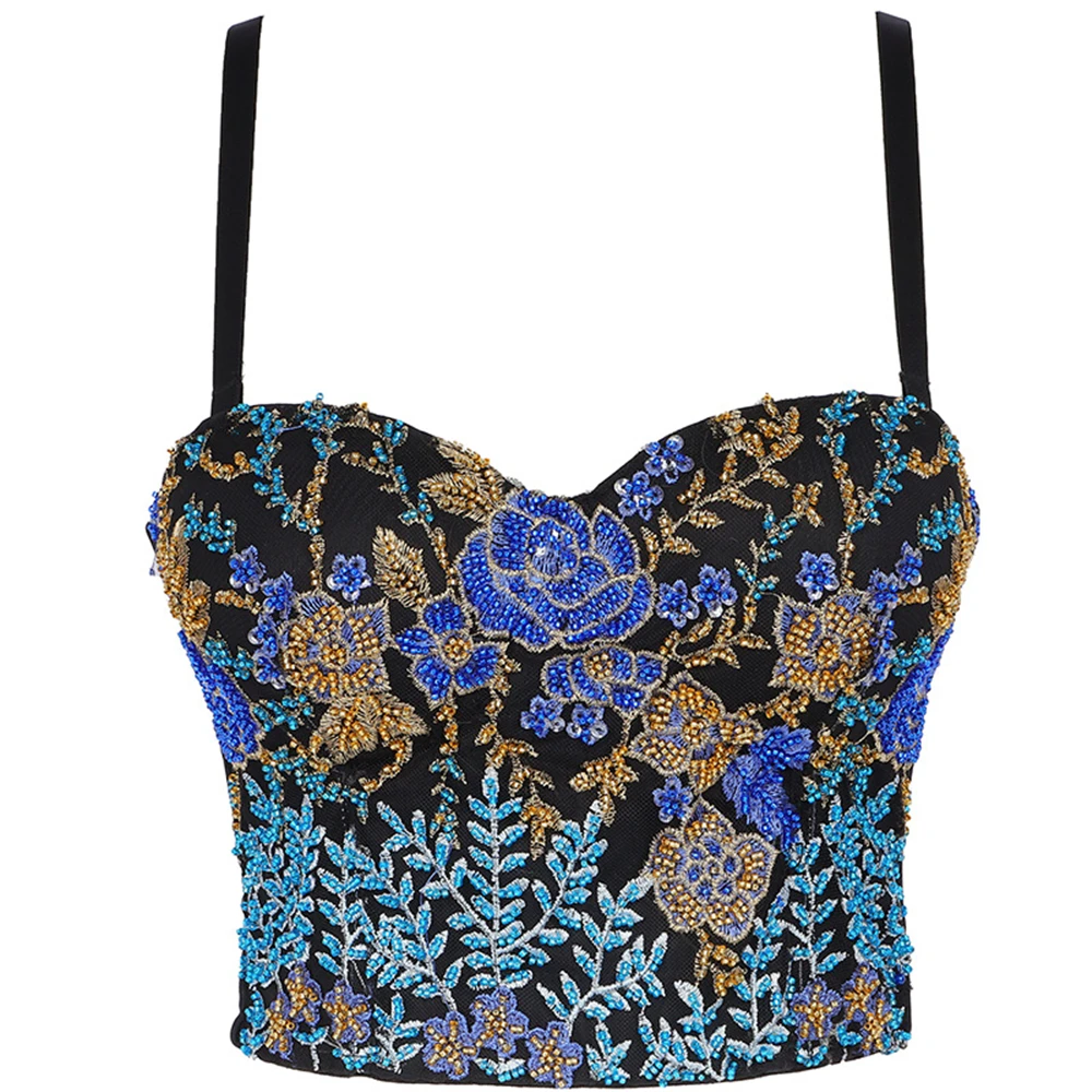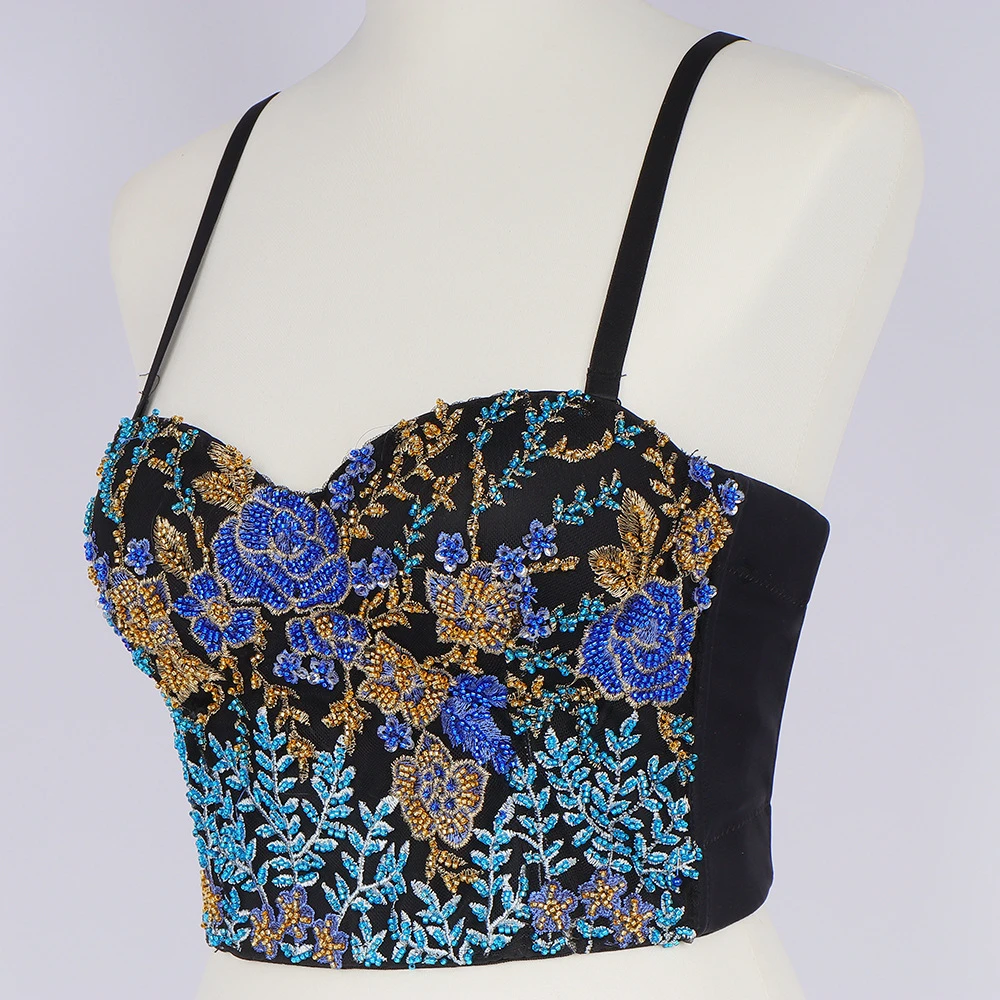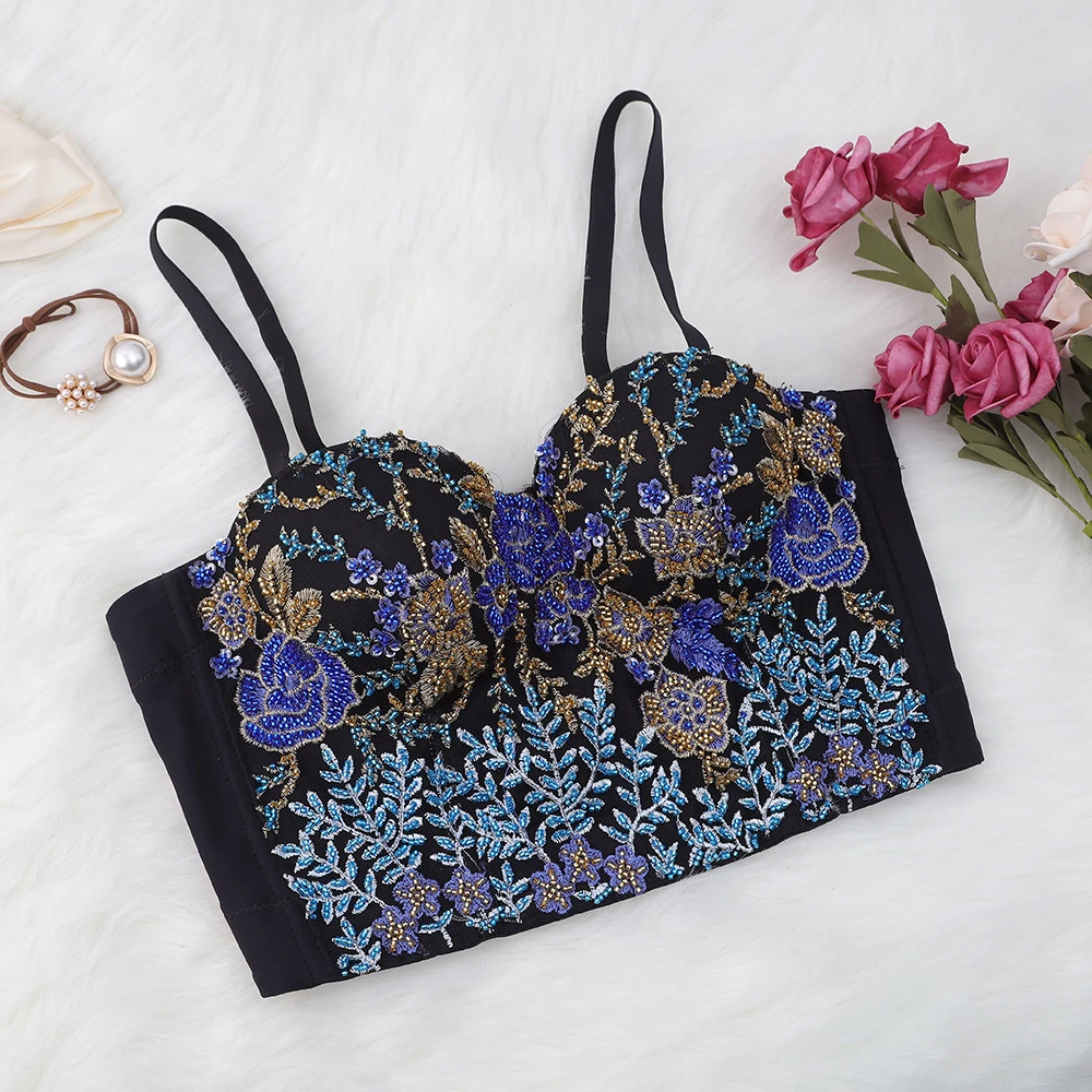 Зимний сексуальный женский корсет с вышивкой из бисера с чашкой, для ночного клуба, для вечеринки, короткий женский бюстгальтер на бретельках, укороченный топ с пуш-ап, для груди