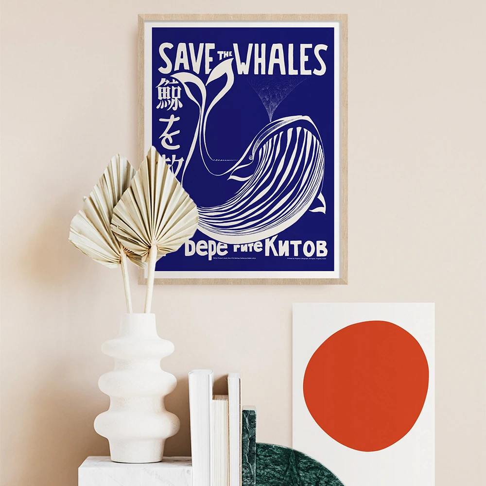 Винтажные японские постеры, изображения на выставке сохранить синие киты, современные животные, печать на холсте, картины, домашний декор для стен