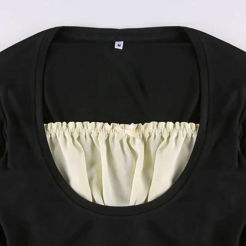 Повседневные облегающие черные футболки Darlingaga в стиле пэчворк ...