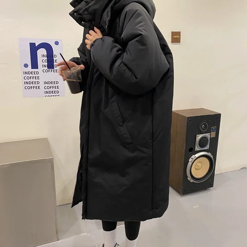 Зимняя куртка в стиле Харадзюку, длинная хлопковая куртка с капюшон...