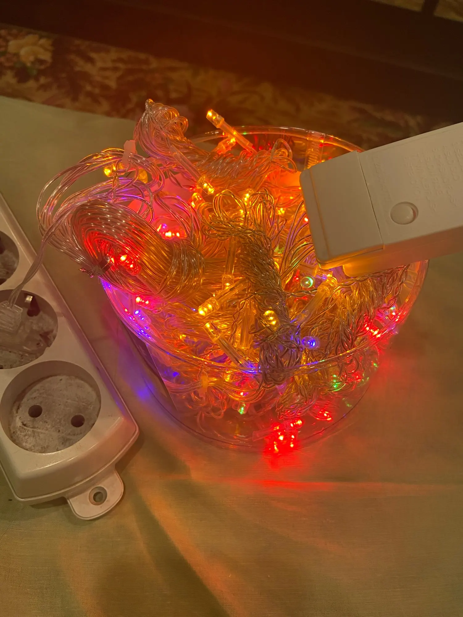 Ну просто сказка) новогоднее настроение пришло также быстро как и эта гирлянда. Светится всё, режимов просто тьма (тыкаю раз 8, чтобы добраться до простого свечения без мигания). Одна странность - лакрицей пахнет))
