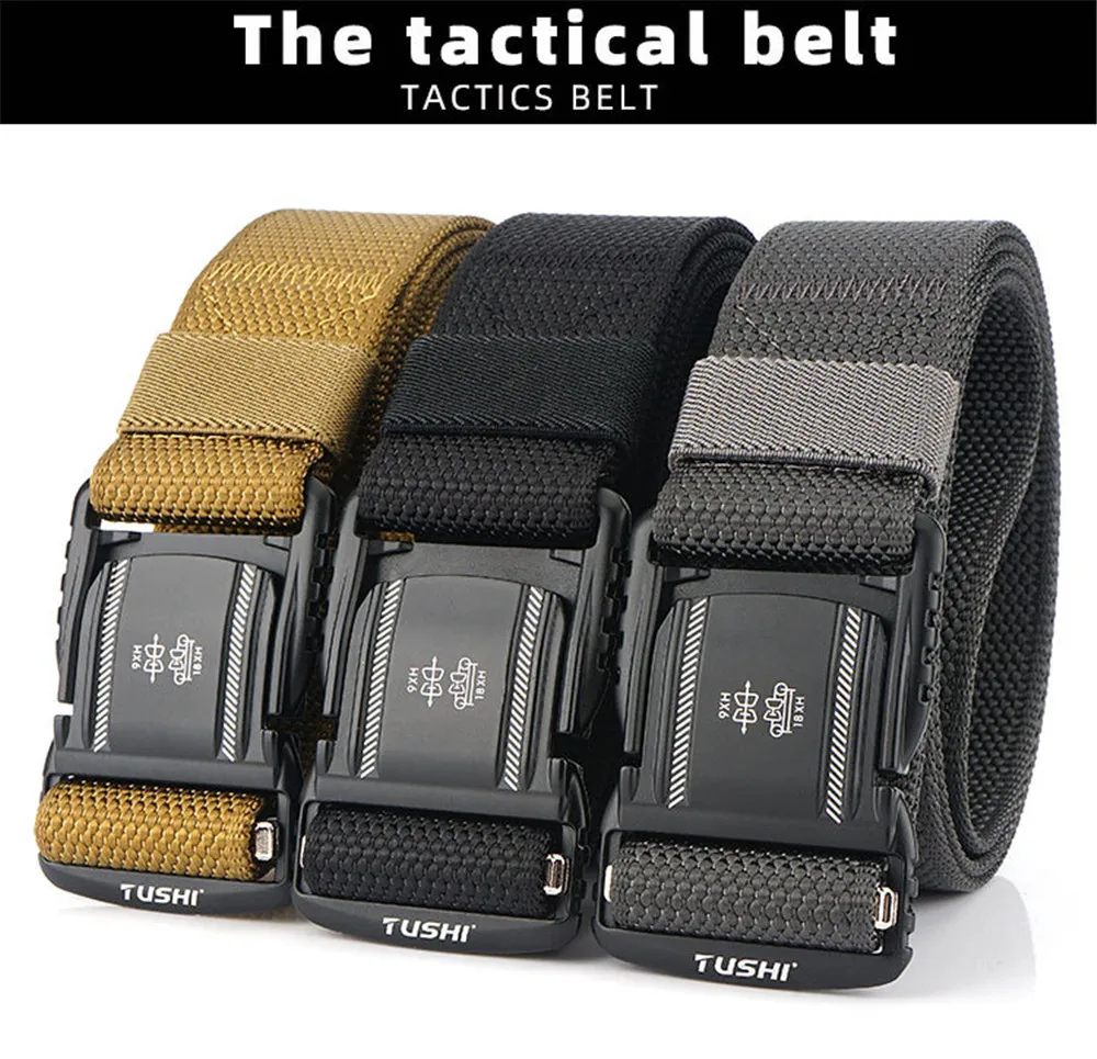 Ремень тактический Мужской, эластичный пояс для джинсов и брюк, Повседневный Пояс-стрейч для комбинезона, уличный рабочий ремень с магнитной пряжкой из сплава