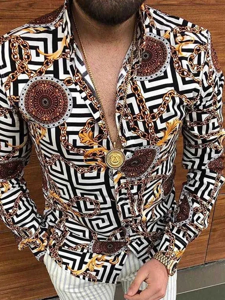 Рубашка мужская с длинным рукавом, повседневная с отложным воротником, с цветочным принтом, на пуговицах, осень