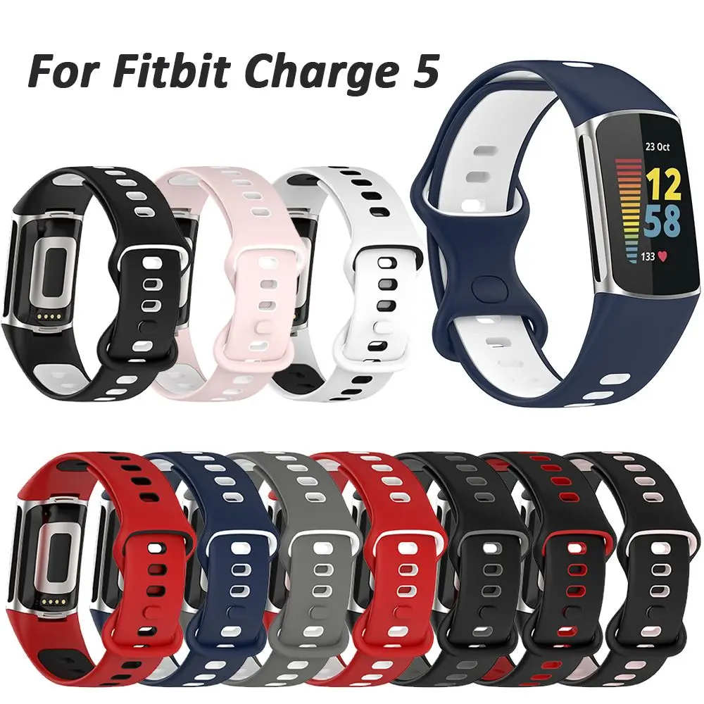 Новый браслет спортивный двухцветный сменный силиконовый ремешок для Fitbit Charge 5