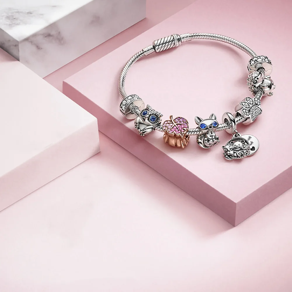 Осенние подвески с голубыми глазами и открытым сердцем, медведем лисы и белка, подходят для оригинальных браслетов Pandora