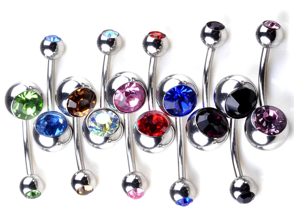 Кольцо для пирсинга пупка из хирургической стали с кристаллами и стразами, 10 шт.лот
