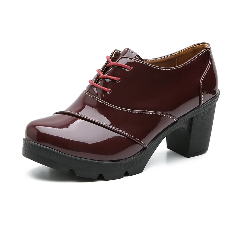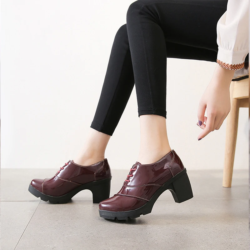 Новинка, женская обувь из лакированной кожи на толстом высоком кабл...