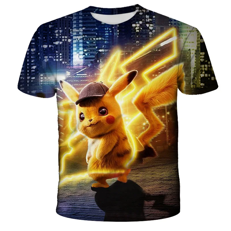 2021 Детская футболка с рисунком Аниме Пикачу 3D, модные Забавные милые футболки с коротким рукавом, Повседневная футболка в стиле Харадзюку