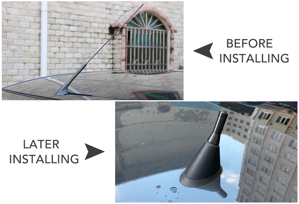 Замените длинную антенну оригинального автомобиля, красивый внешний вид, анти-сломанный, беспрепятственный через нижнюю часть здания, и предотвратить изначальную антенну от вытягивания при использовании автомобильного пончо.